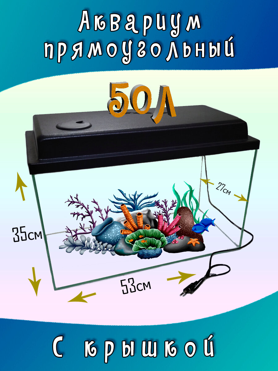 Аквариум прямоугольный с крышкой 50л 53*27*35см интересное: