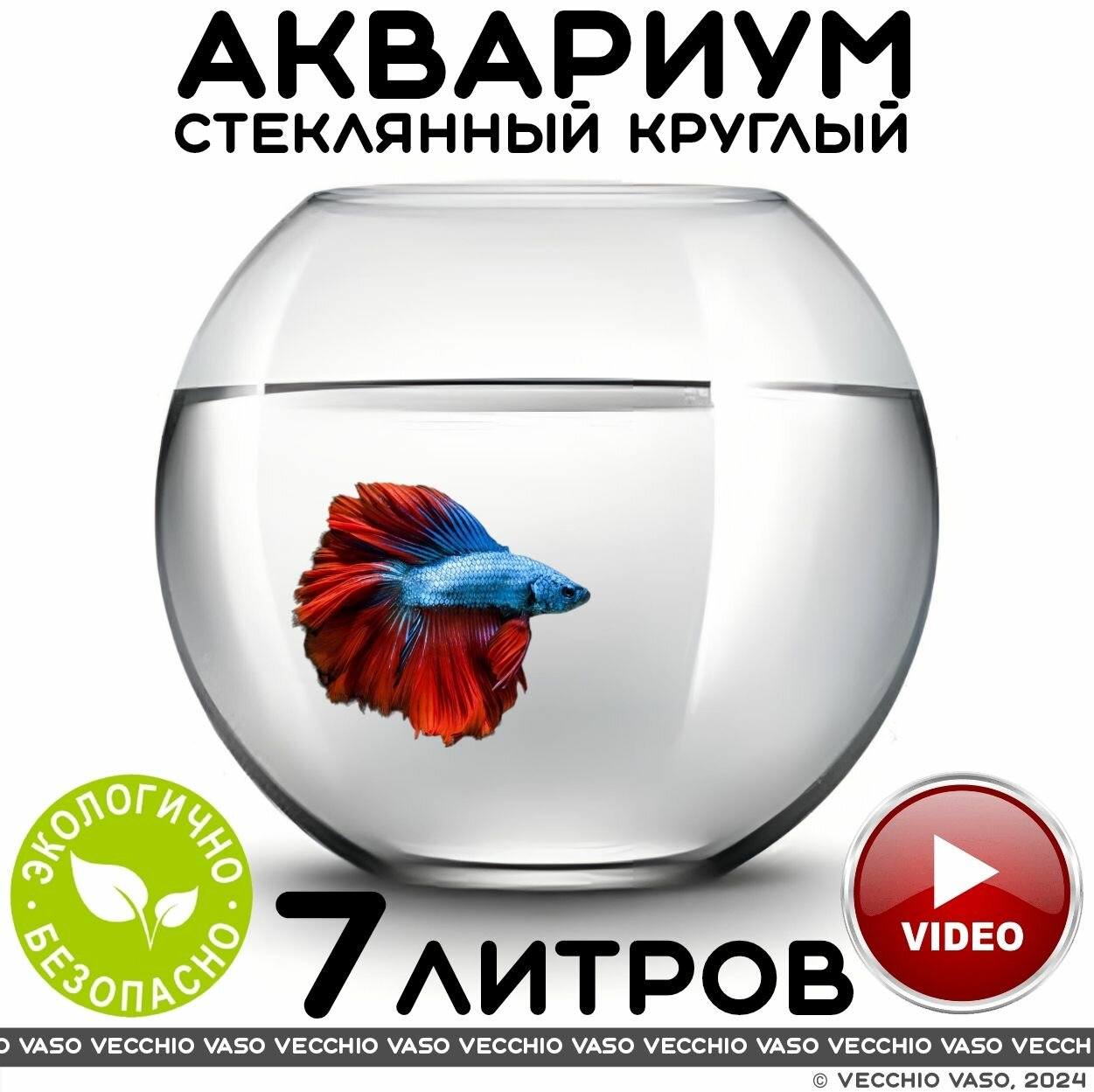 Аквариум vecchio vaso шар круглый стеклянный для рыбок бокал 7 литров