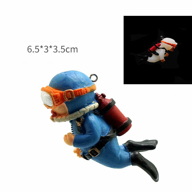 Аквариумный декоративный светящийся аквалангист плавающий зеленый 6*3.5CM интересное: