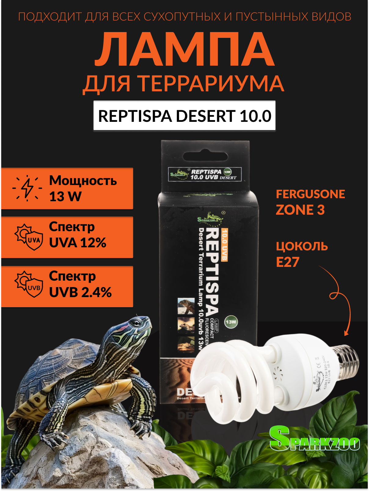 Ультрафиолетовая лампа для черепах УФ SparkZoo Reptispa Е27 13W интересное: