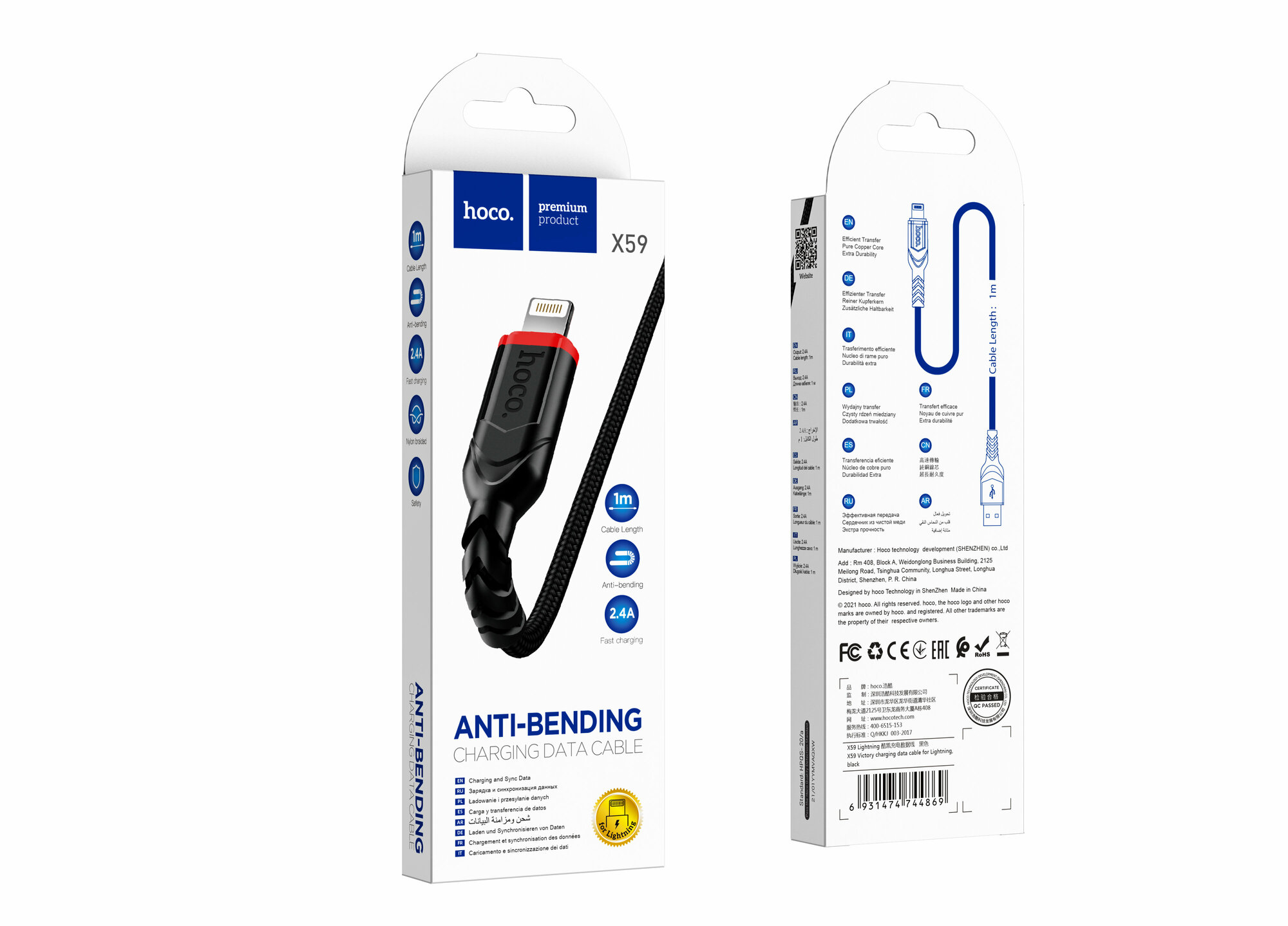 Кабель зарядки и синхронизации данных USB HOCO X59 Victory для Lightning, 2.4 A, длина 1.0 м, черный 6931474744869
