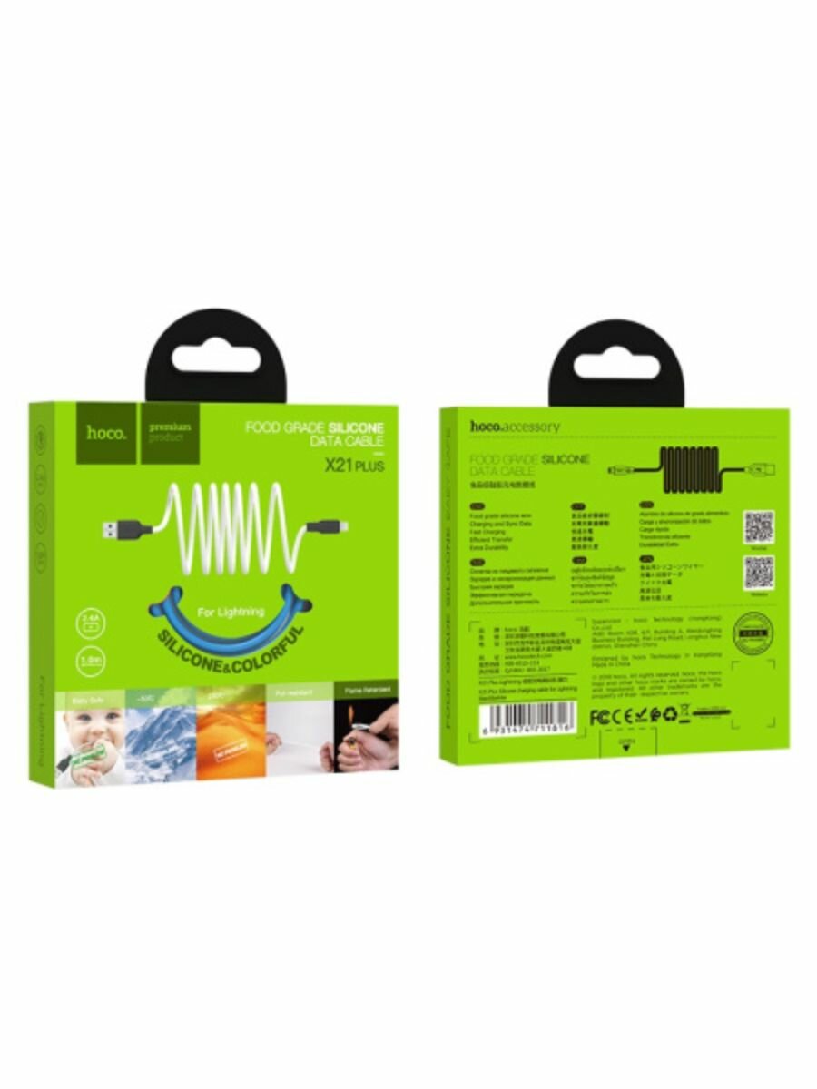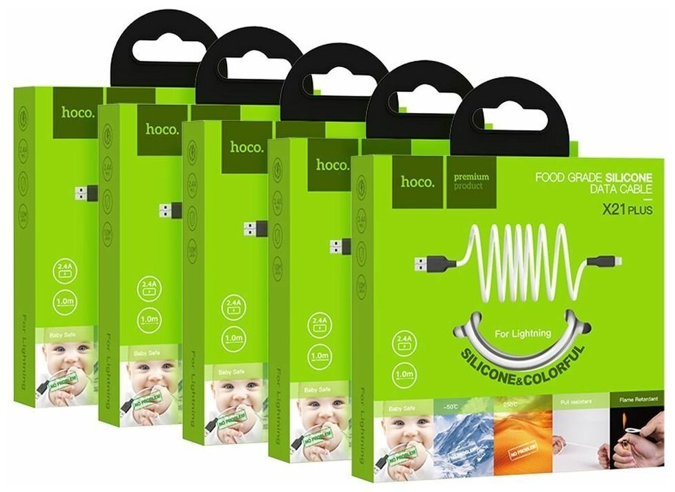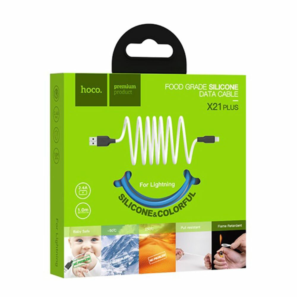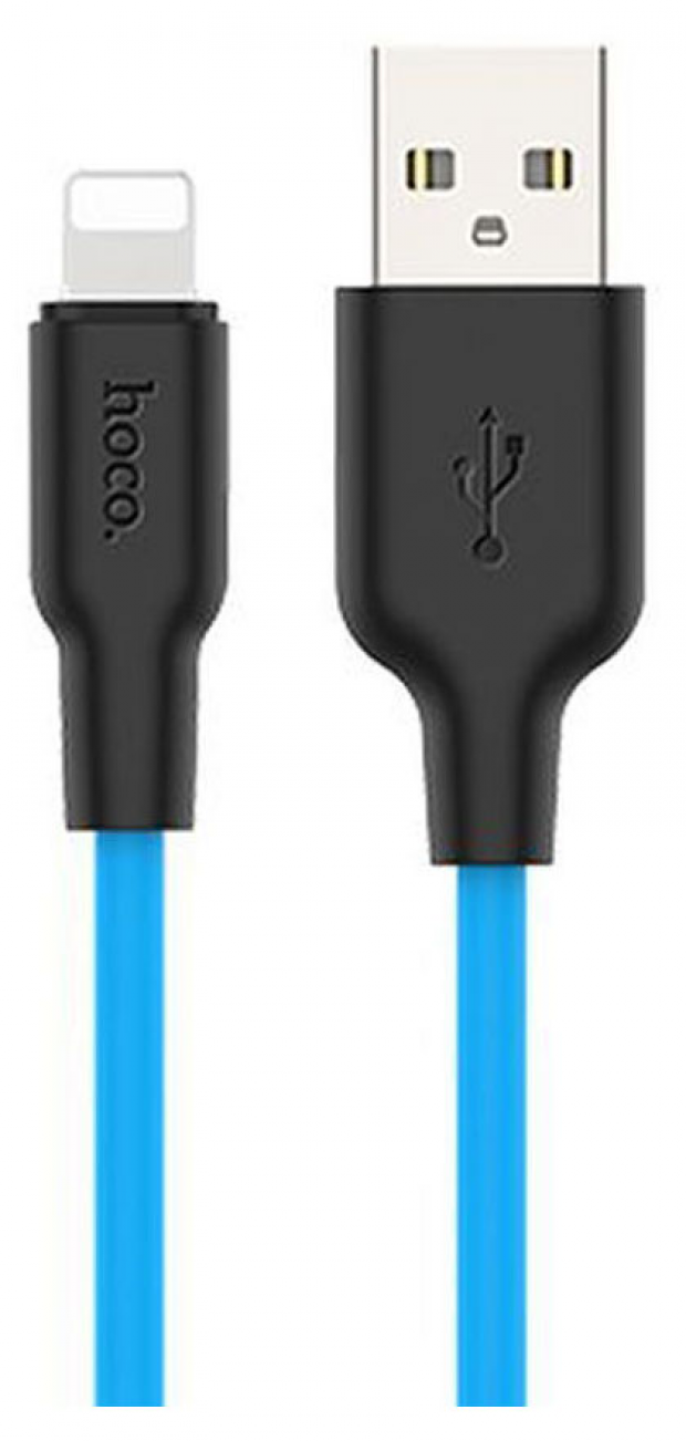 USB кабель HOCO X21 Plus Silicone Lightning 8-pin, 2.4А, 1м, силикон (голубой/черный)