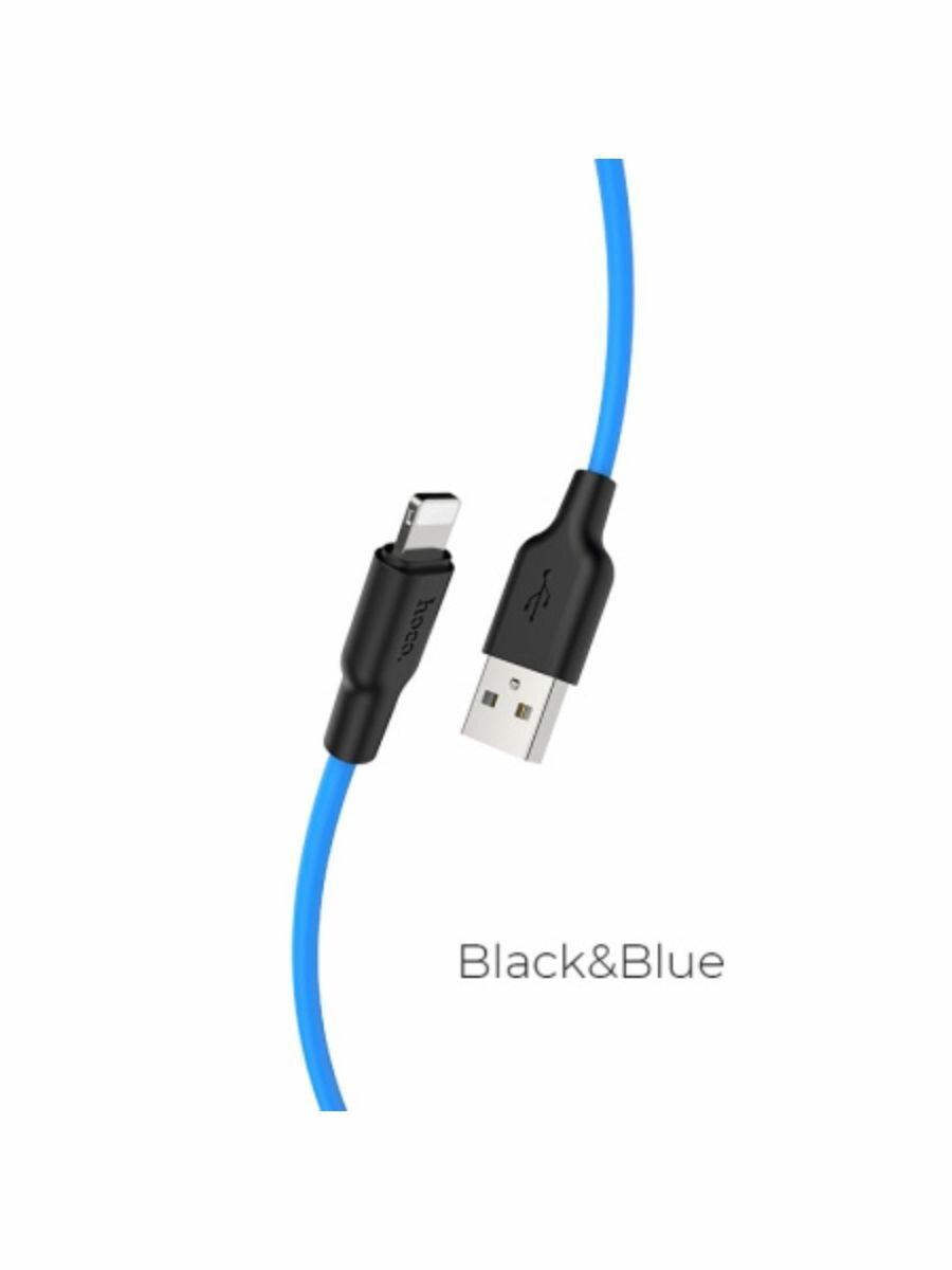 Купить USB дата кабель Lightning, HOCO, X21 Plus, силиконовый, черно-голубой