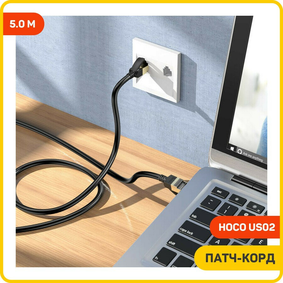 Патч-корд Hoco US02, RJ45-RJ45 5м, чёрный 9881479