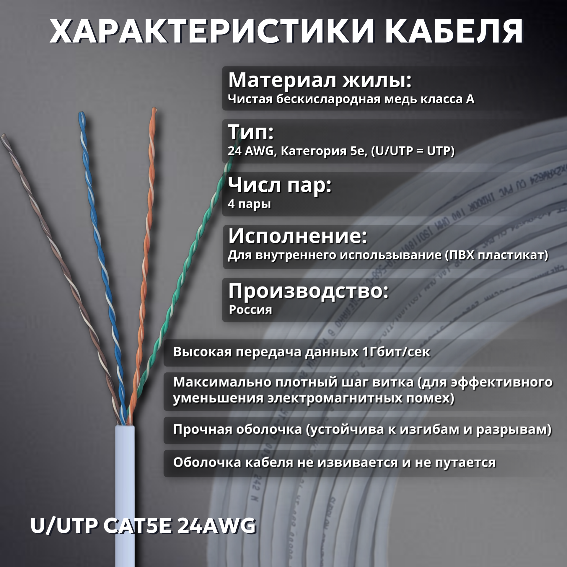 СохранитьВнутренний интернет кабель. Витая пара UTP 4 пары, Cat.5е 24AWG Cu (Чистая бескислородная медь класса А) цвет: белый, 35 метров. интересное: