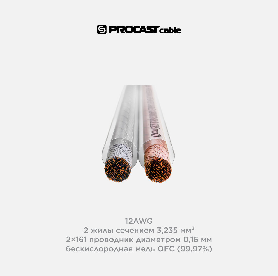 Инсталляционный Hi-Fi акустический кабель 2х3,235mm² в прозрачной изоляции PROCAST cable ST 12.OFC 5м