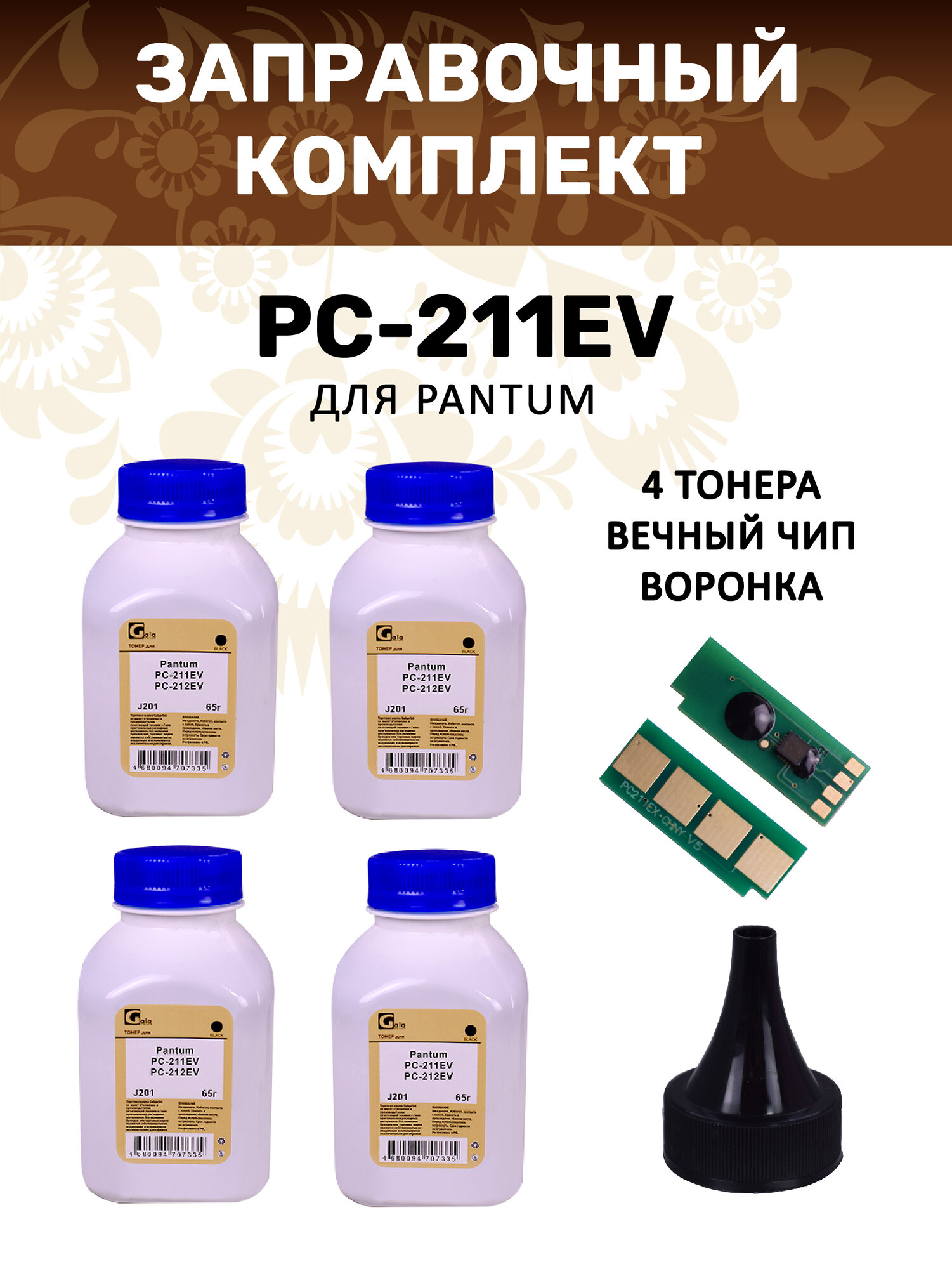 Заправочный комплект GalaPrint PC-211EV вечный ЧИП + тонер 65гр 4 шт + воронка интересное: