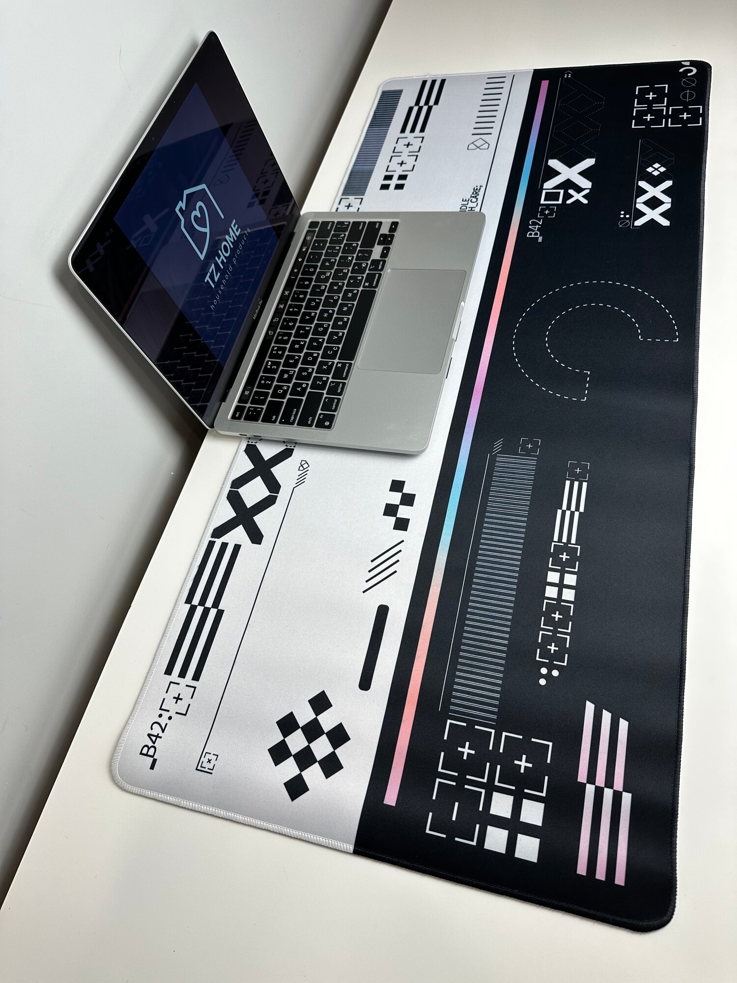 Игровой коврик для мыши белый вверх "TZ Cyber Поток Информации XXL" 40х90см интересное: