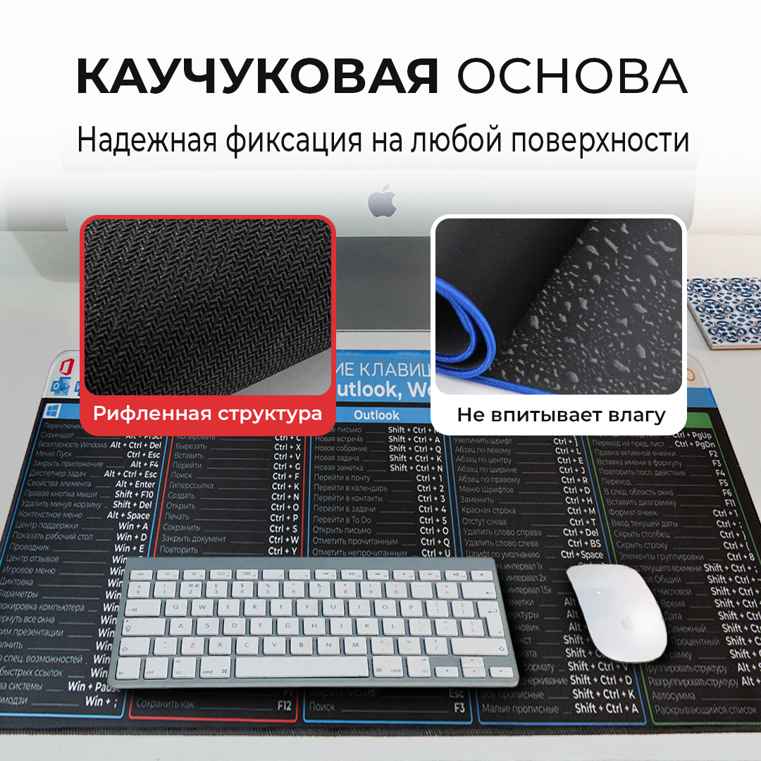 СохранитьКоврик для мышки и клавиатуры игровой, 800*300*2 мм, Горячие клавиши Windows и Office интересное:
