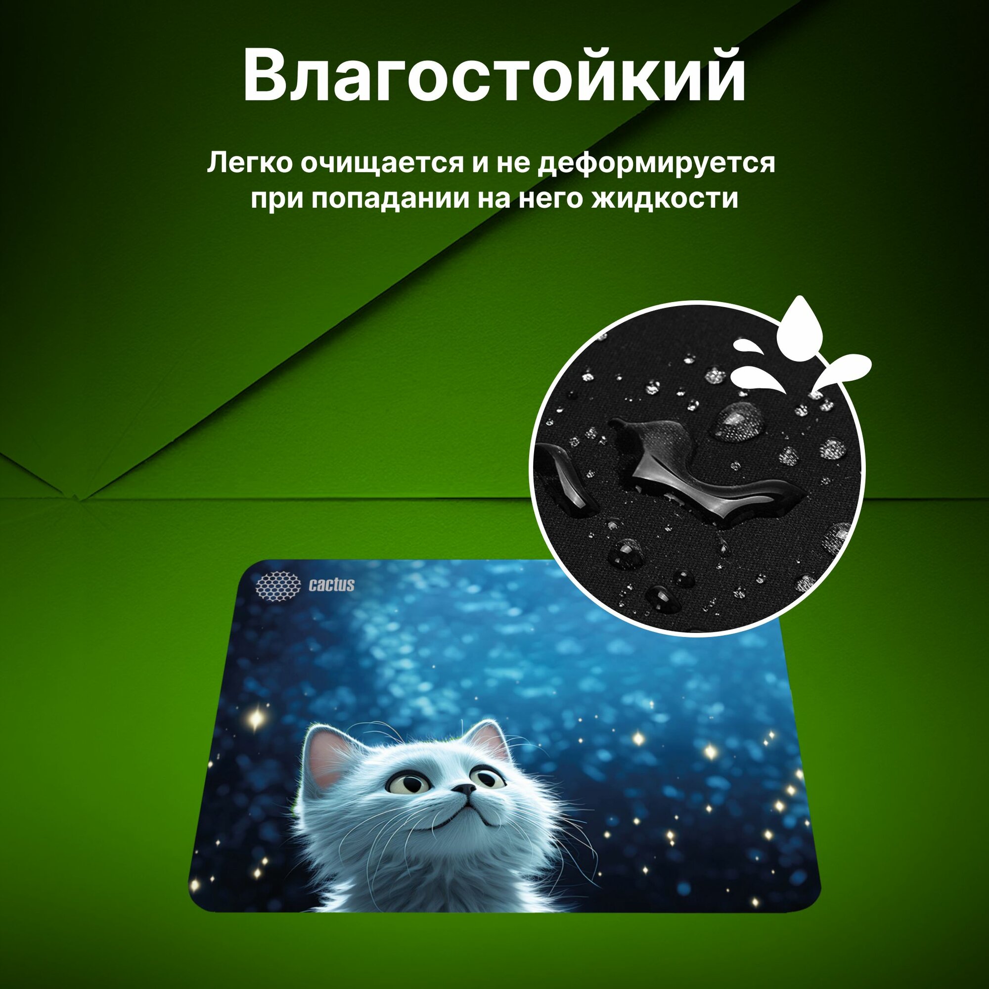 Коврик для мыши Cactus White Cat ткань, 300х250х3мм [cs-mp-d11m]