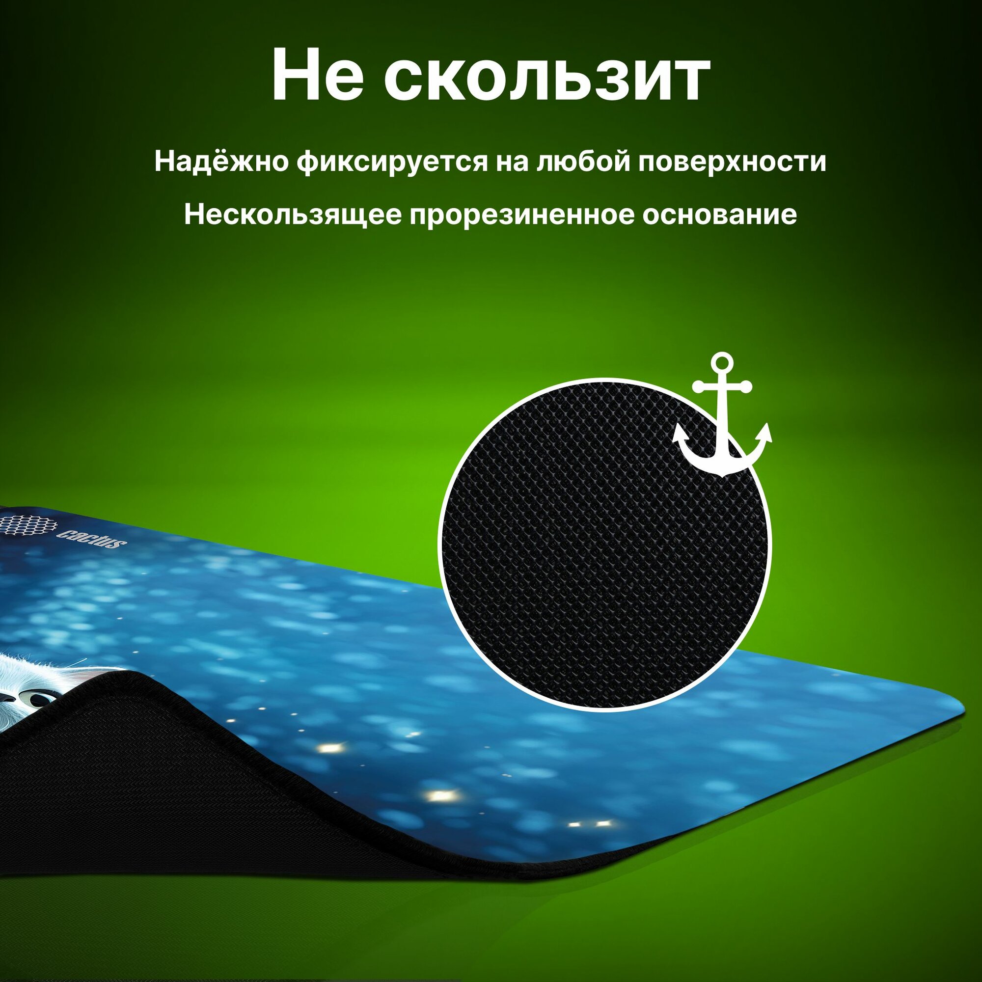 Коврик для мыши Cactus "White Cat" CS-MP-P06XS, игровой, нескользящий, синий, белый