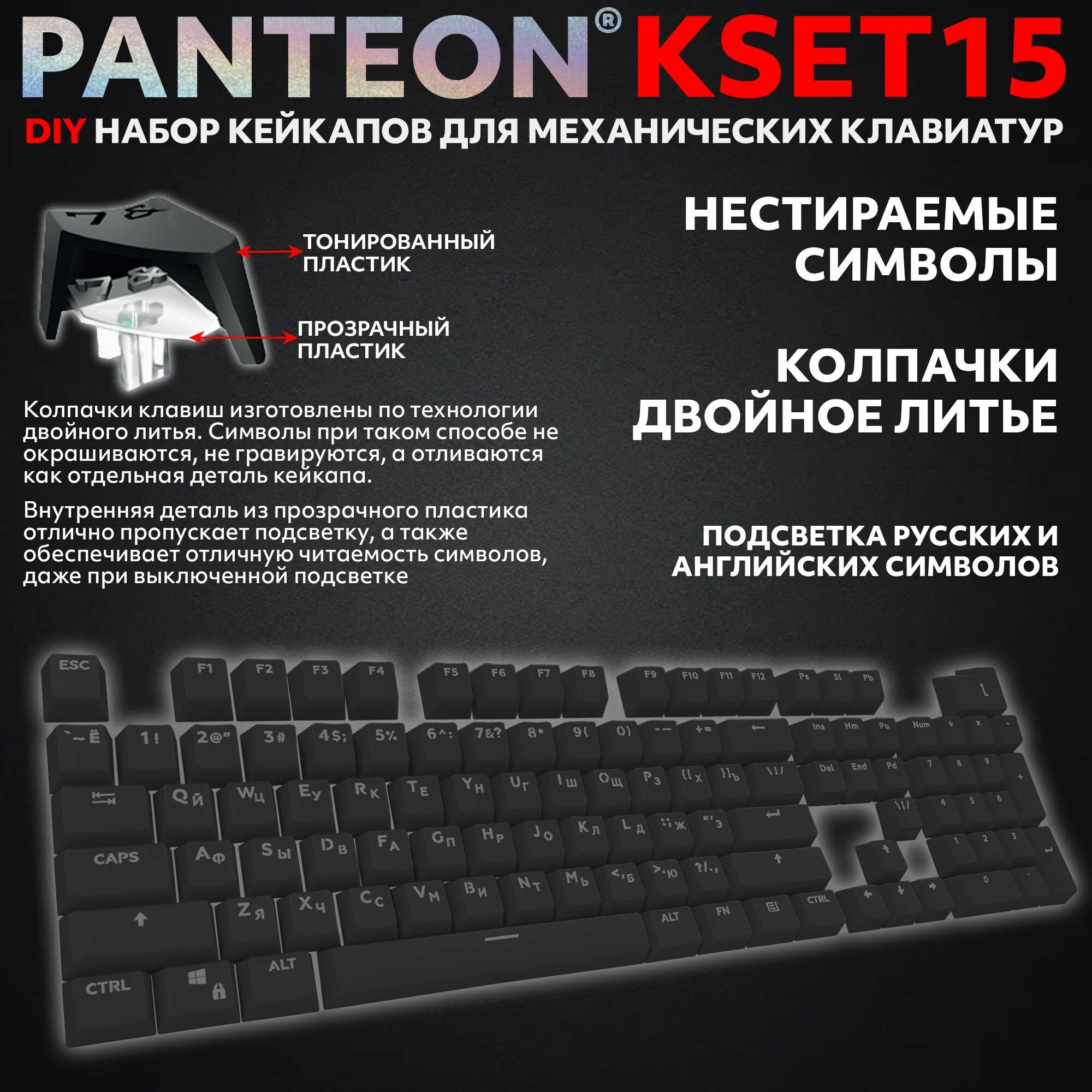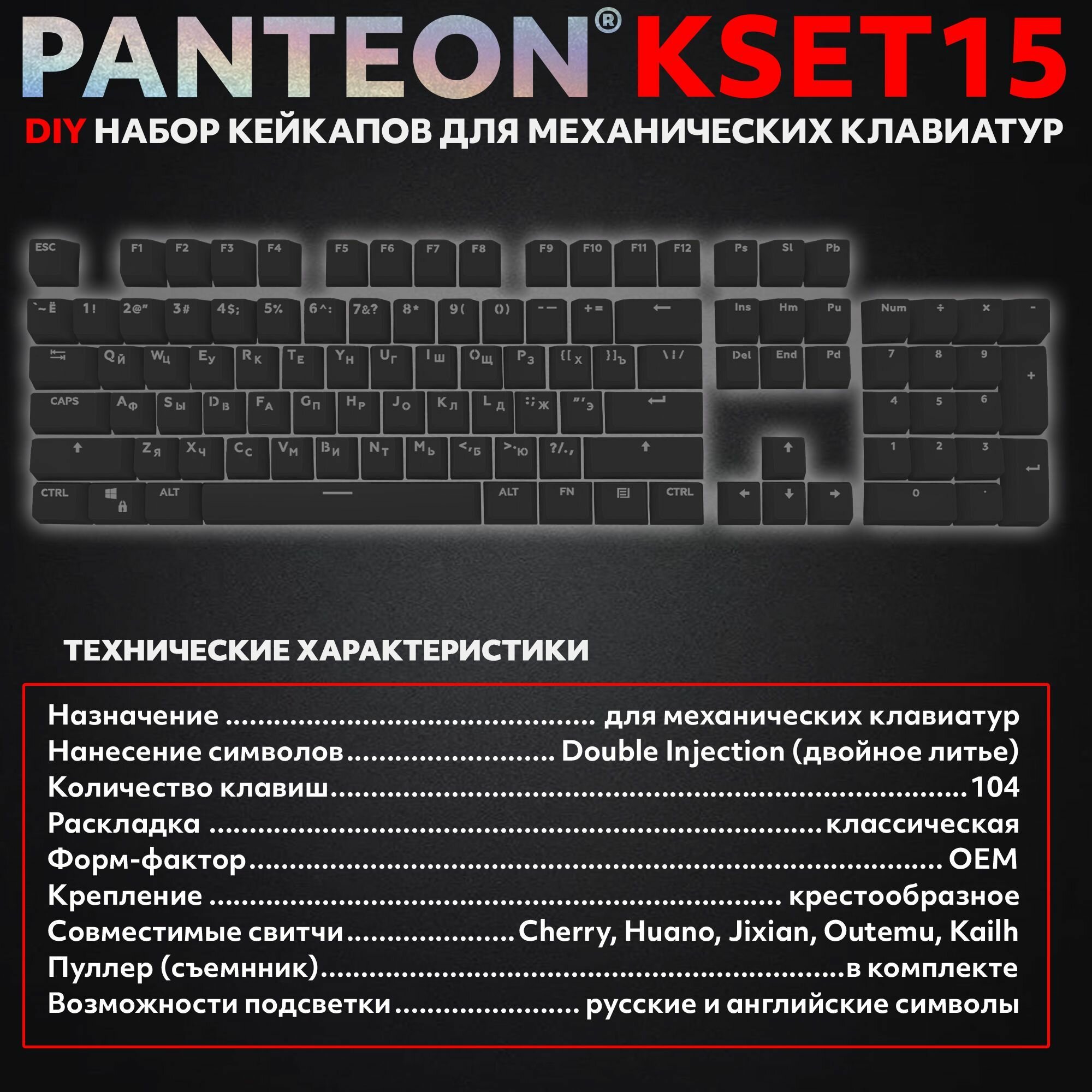 Купить PANTEON KSET15 Black Универсальный набор кейкапов для механических клавиатур (104 клавиши), цвет: черный