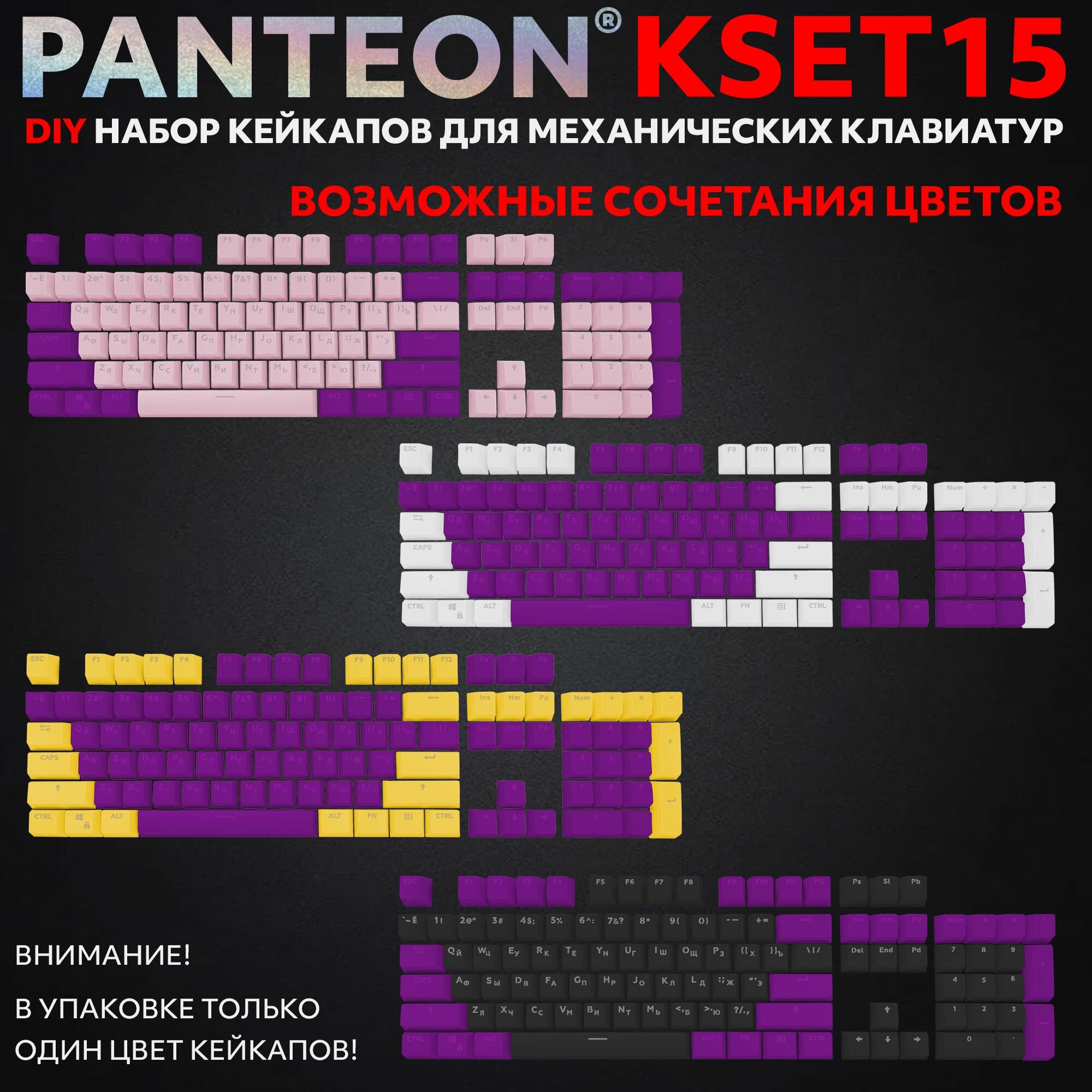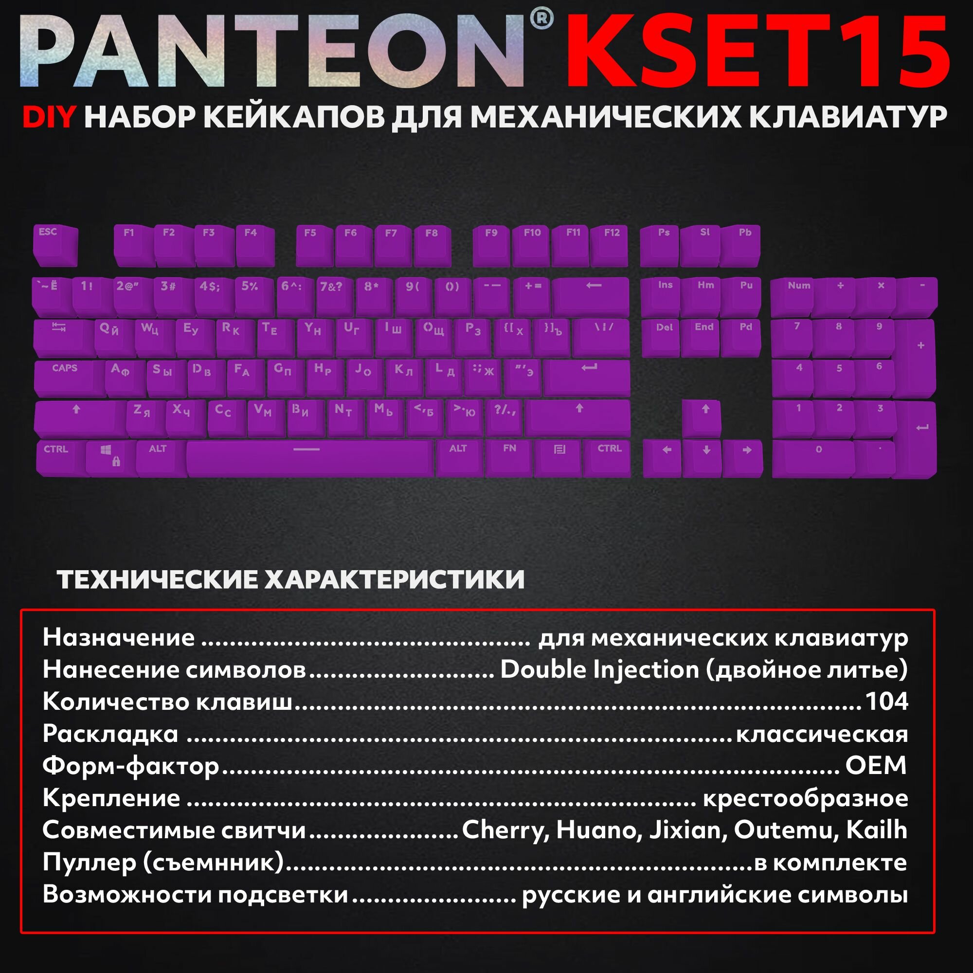 Купить PANTEON KSET15 Purple Универсальный набор кейкапов для механических клавиатур (104 клавиши), цвет: фиолетовый