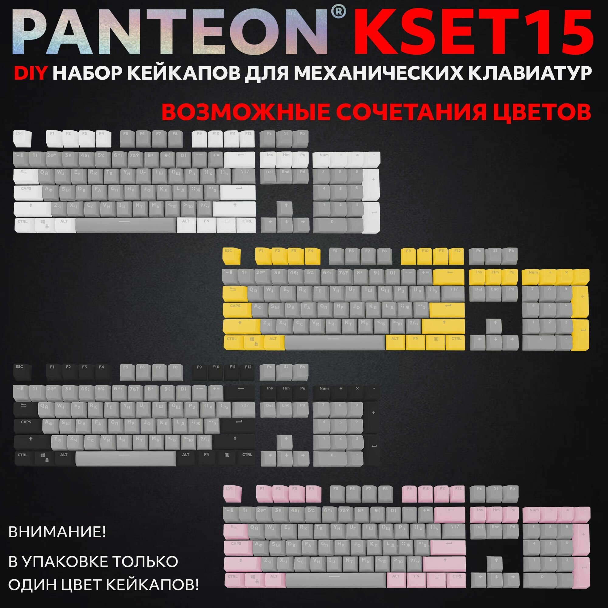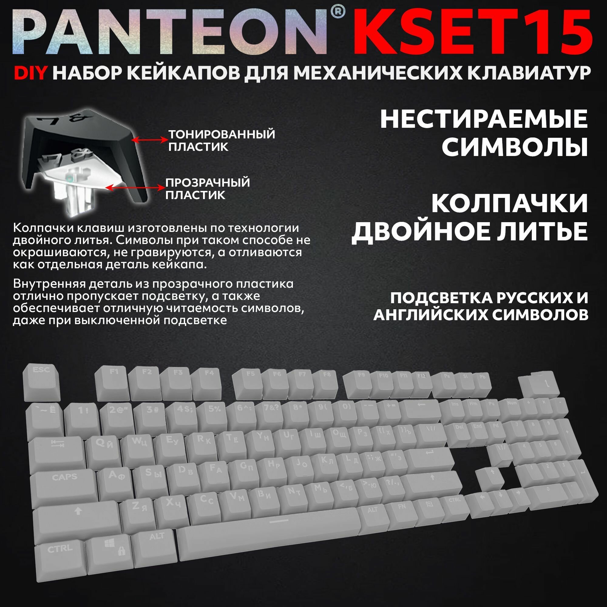 Купить PANTEON KSET15 Grey Универсальный набор кейкапов для механических клавиатур (104 клавиши) цвет: серый