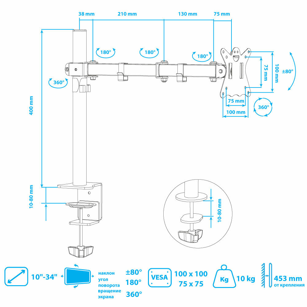 СохранитьKromax Кронштейн для монитора настольный CASPER-507 / до 34" / до 10 кг интересное: