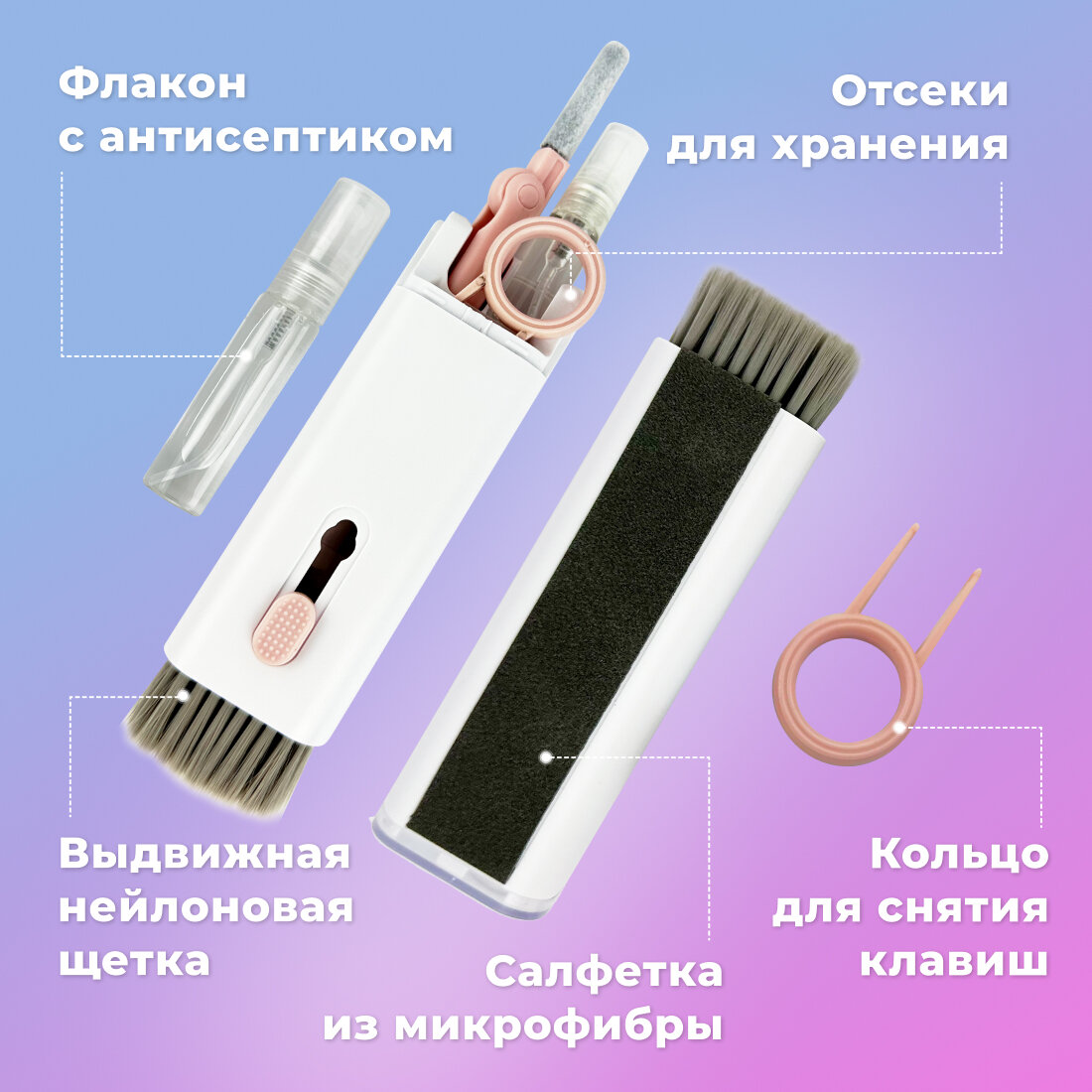 Щетка 7в1 для чистки клавиатуры розовая интересное: