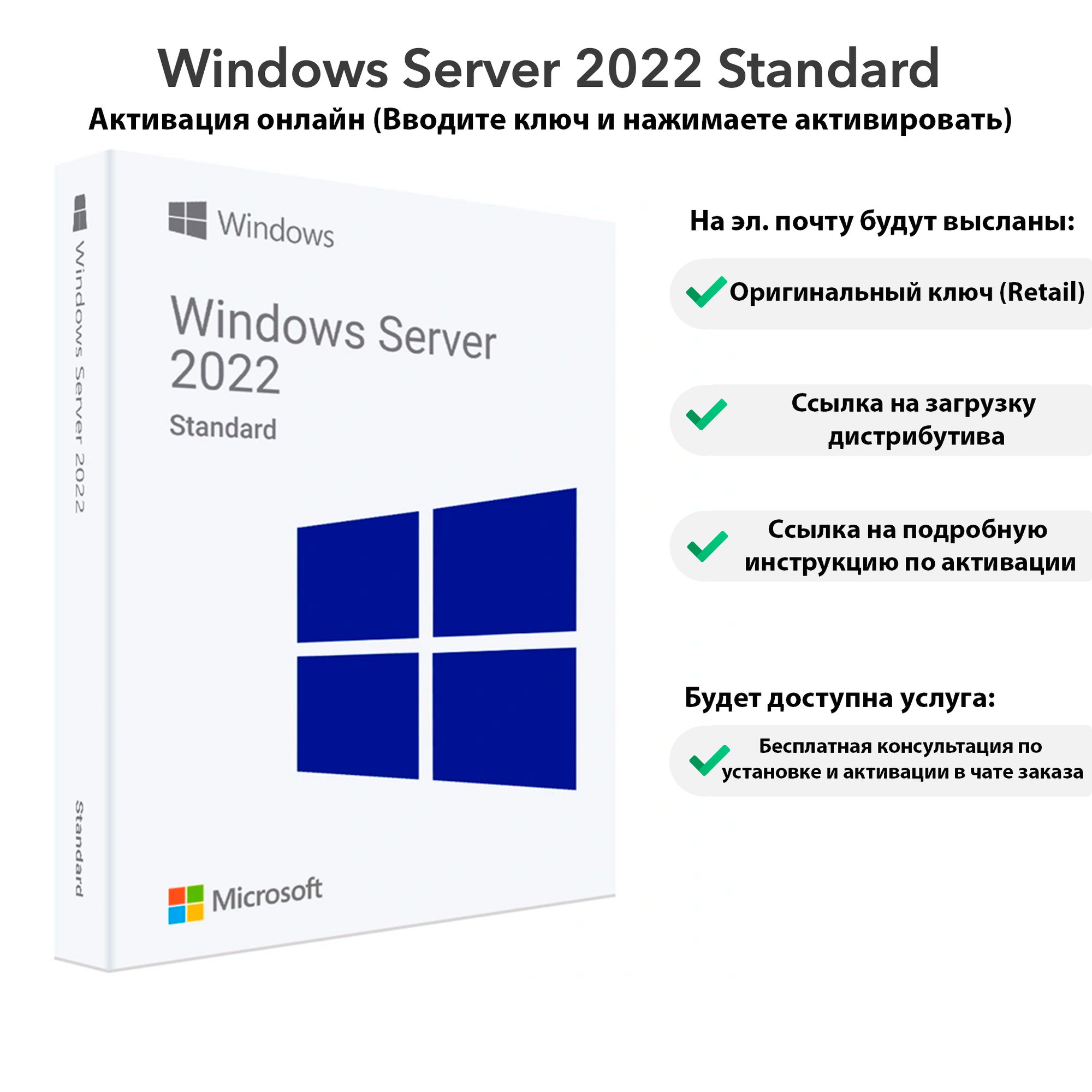 | Состав пакета | Microsoft Windows Server 2022 Stantard |
