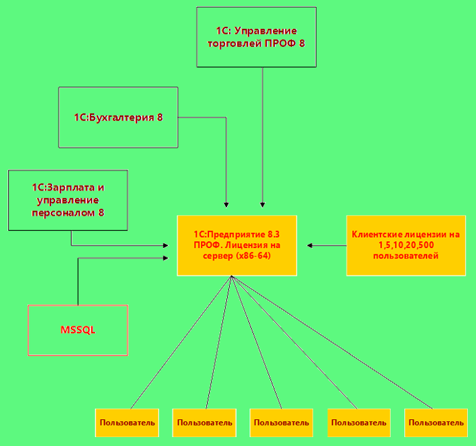 | Совместимость/дополнительные требования | Доп лицензия к основным поставкам 1С ПРОФ. Например, 1С: Бухгалтерии 8, 1С: Управлению торговлей 8 и др. |