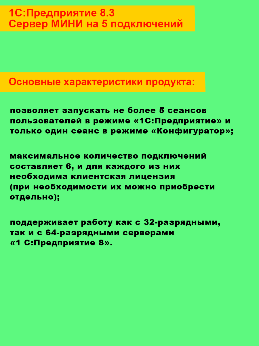 Купить 1С:Предприятие 8.3. Сервер мини на 5 подключений. Электронная поставка