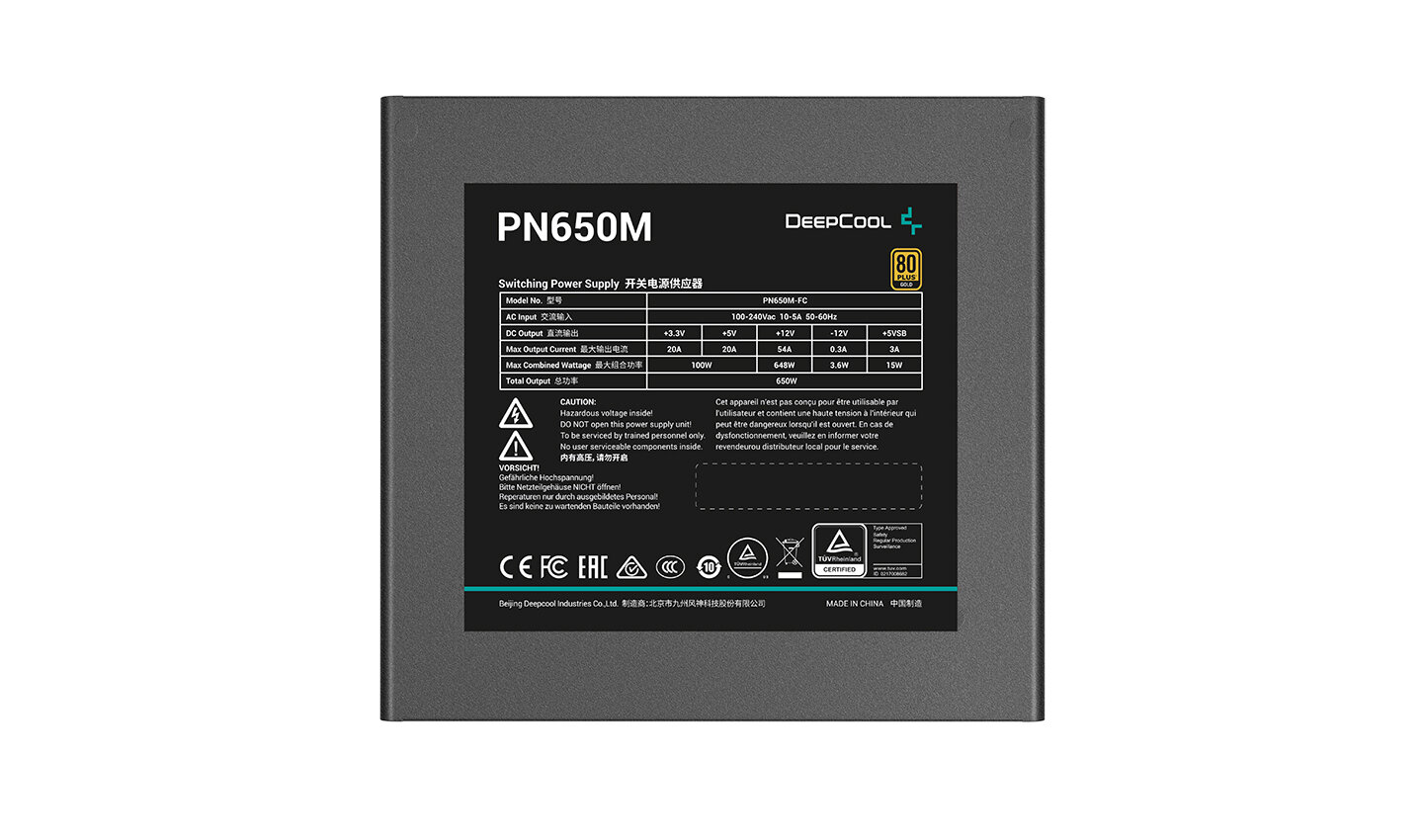 Блок питания Deepcool PN650M (ATX 3.1, 650W, Full Cable Management, PWM 120mm fan, Active PFC, 80+ GOLD, Gen5 PCIe) RET