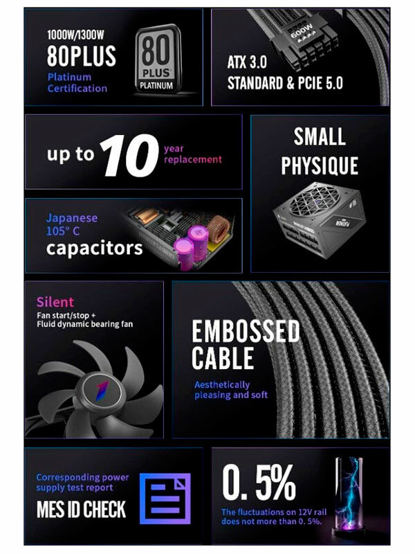 Блок питания 1STPLAYER NGDP, 1000W, 80+ Platinum, ATX3.0 (HA-1000BA3-WH) белый интересное: