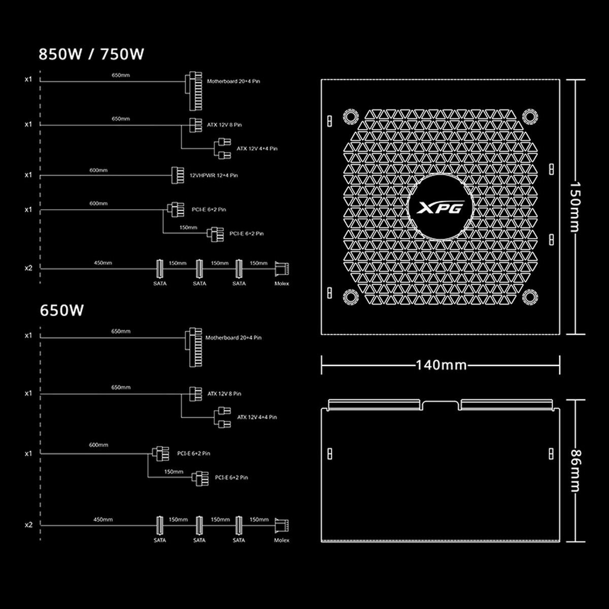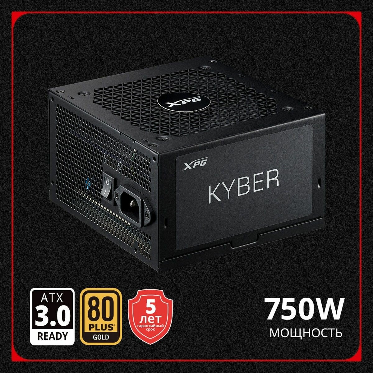 Блок питания XPG "KYBER", мощность 750Вт, 80PLUS Gold, активная система охлаждения