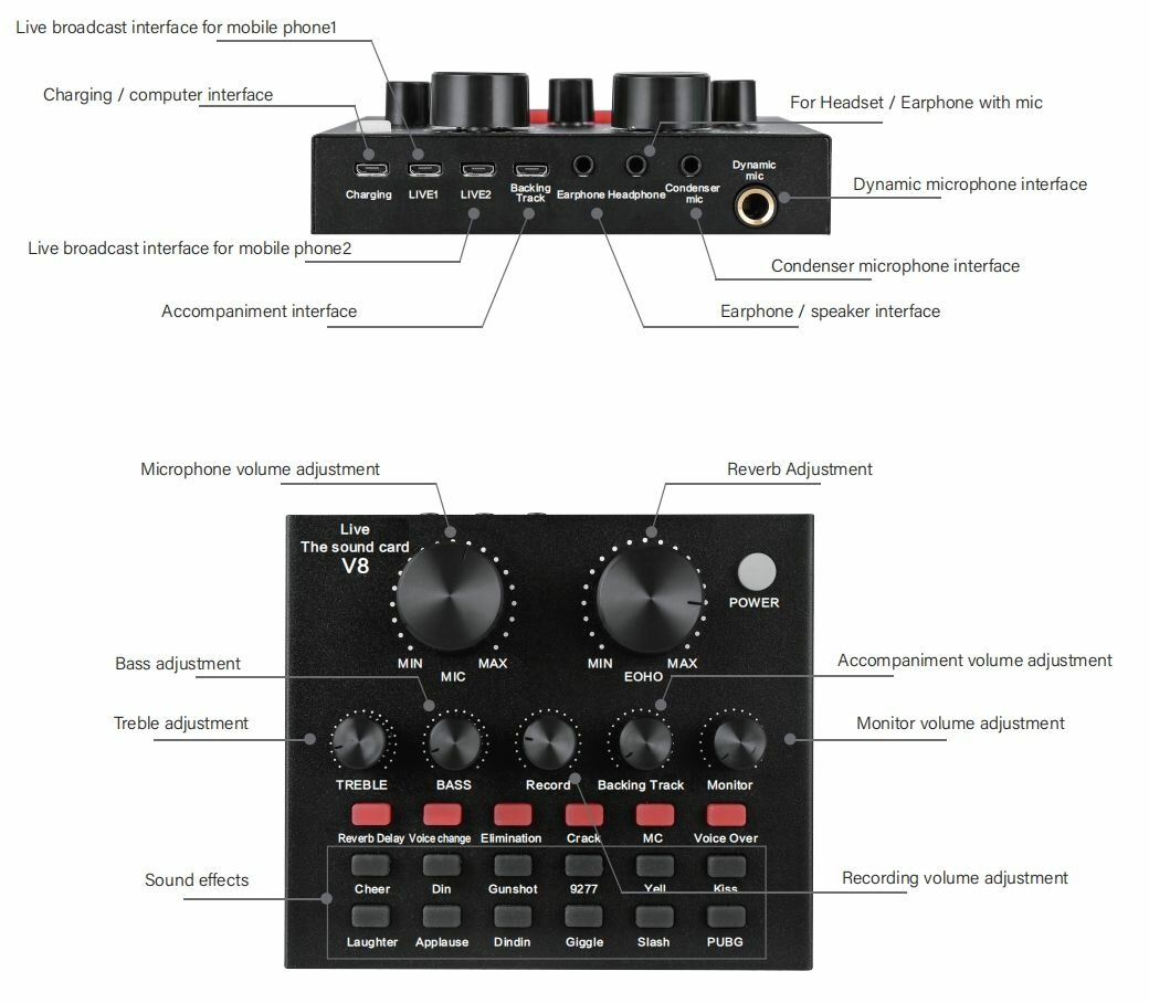 Звуковая карта внешняя MyPads для компьютера, внешний аудиоинтерфейс совместим со всеми типами устройств настройка голоса, эхо