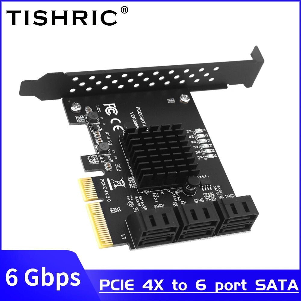 Плата расширения TISHRIC PCIE PCI E SATA 4X 1X на 2/6/10 портов SATA 3,0 контроллер pci Express усилитель, 6 Гбит/с, плата расширения интересное: