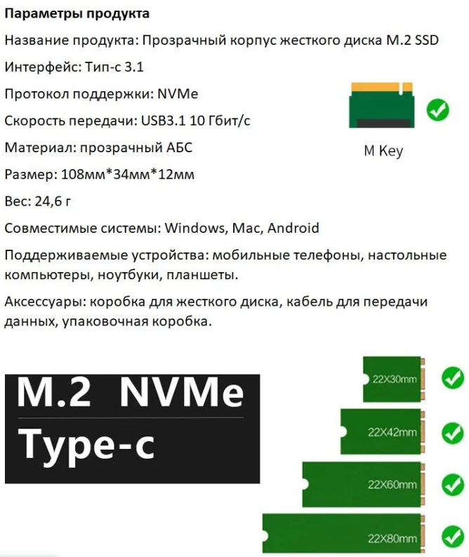 Внешний корпус для SSD M.2 NVME (M-key) USB 3.1 интересное: