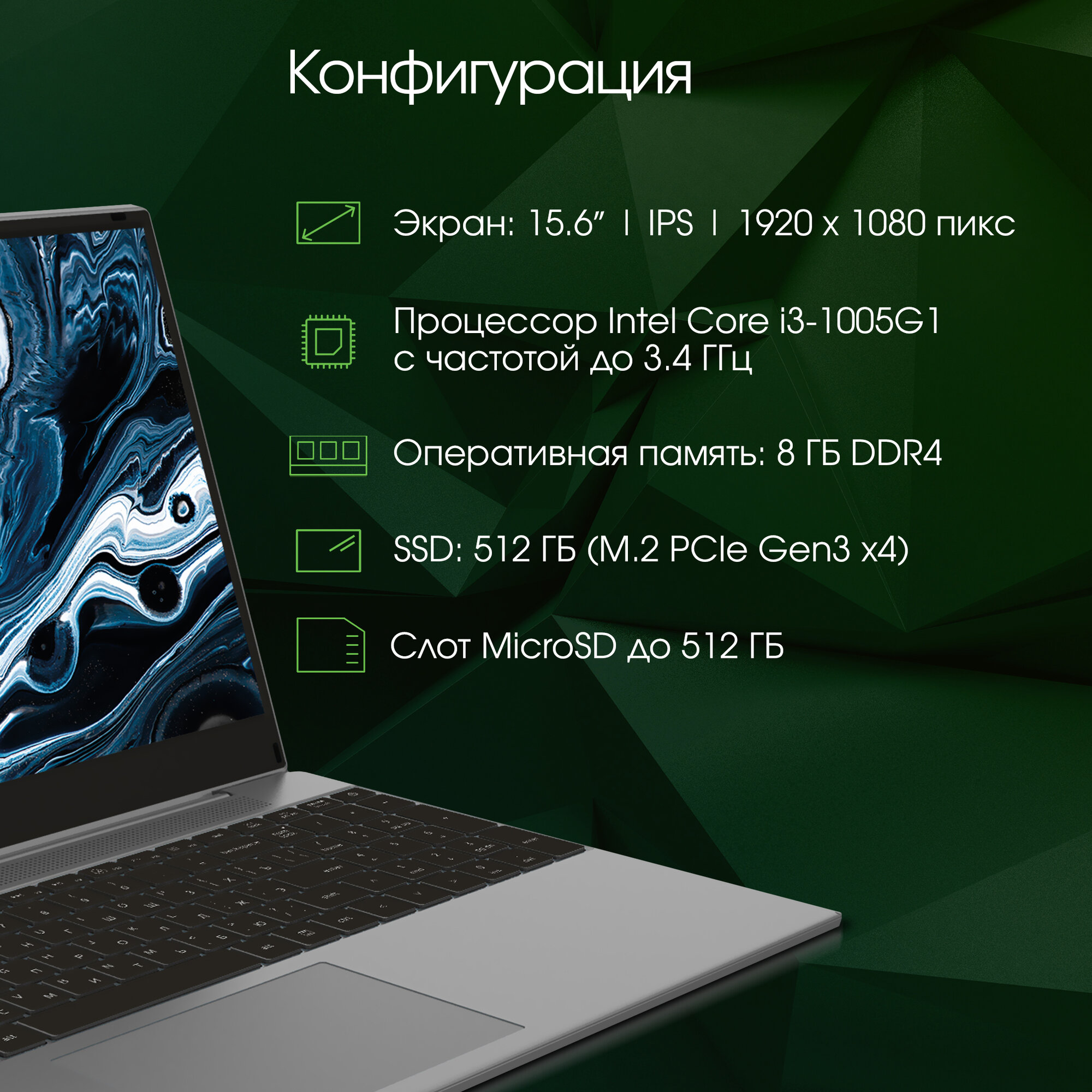 Купить Ноутбук Digma Pro Breve S i3 1005G1/8Gb/SSD512Gb/15.6"/IPS/FHD/W11Pro/dk.grey/4500mAh