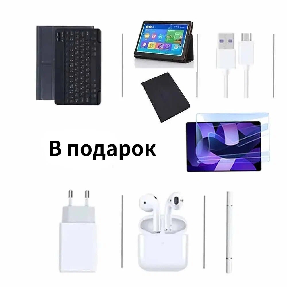 | Комплектация | Планшет, Bluetooth-гарнитура, Bluetooth-клавиатура, защитный кожаный чехол, защитное стекло, стилус, карта памяти 128 Гб |