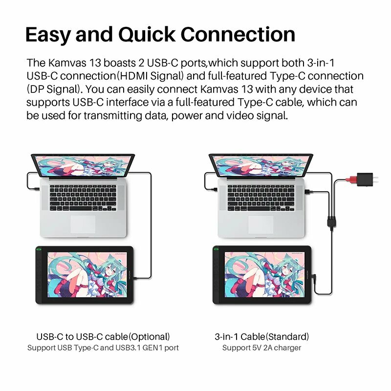 Купить Графический планшет HUION Kamvas 13, 120% sRGB, безбатарейный стилус, 8192 уровня нажатия