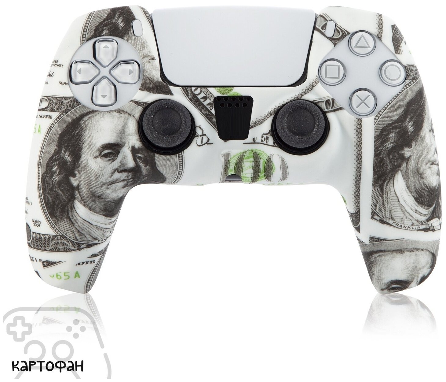 Купить Защитный силиконовый чехол с рисунком для геймпада Sony PlayStation 5 (накладка для контроллера Сони Плэйстэйшн 5), доллары