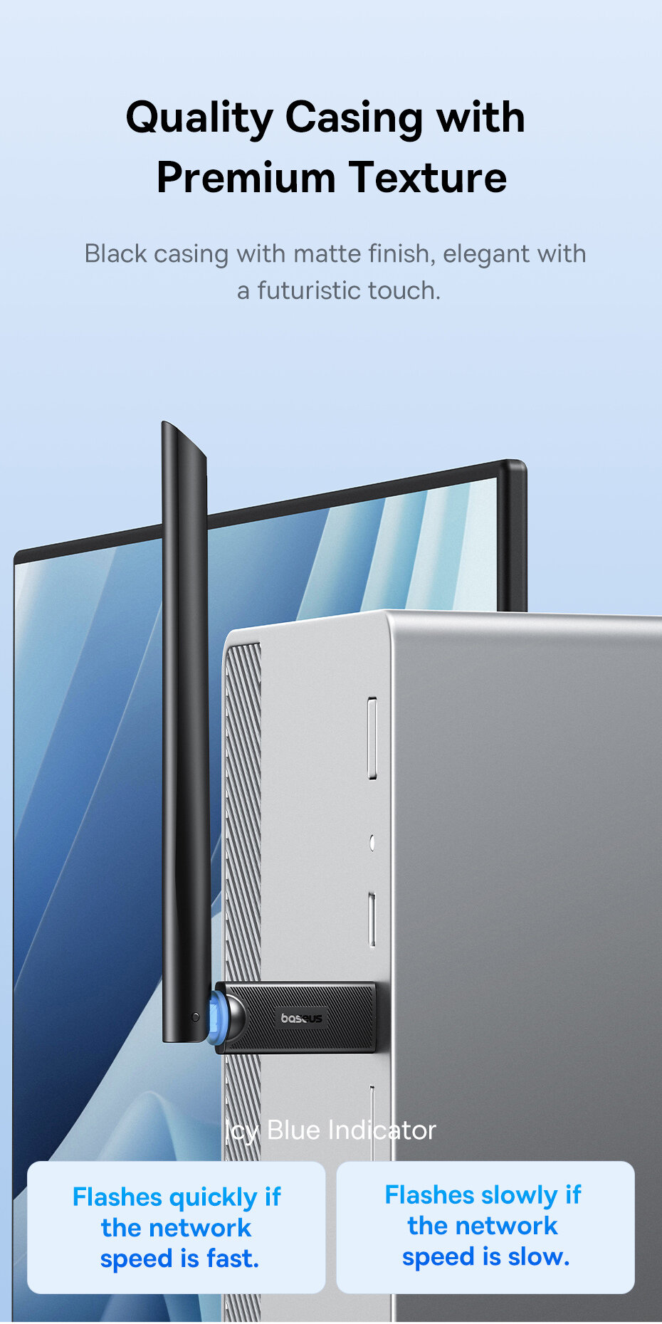 Wi-Fi адаптер Baseus FastJoy Series 650MBPS HIGH SPEED, BS-OH173 (B01317600111-02) черный интересное: