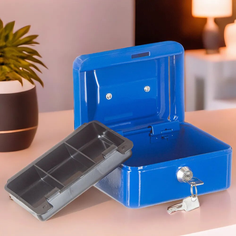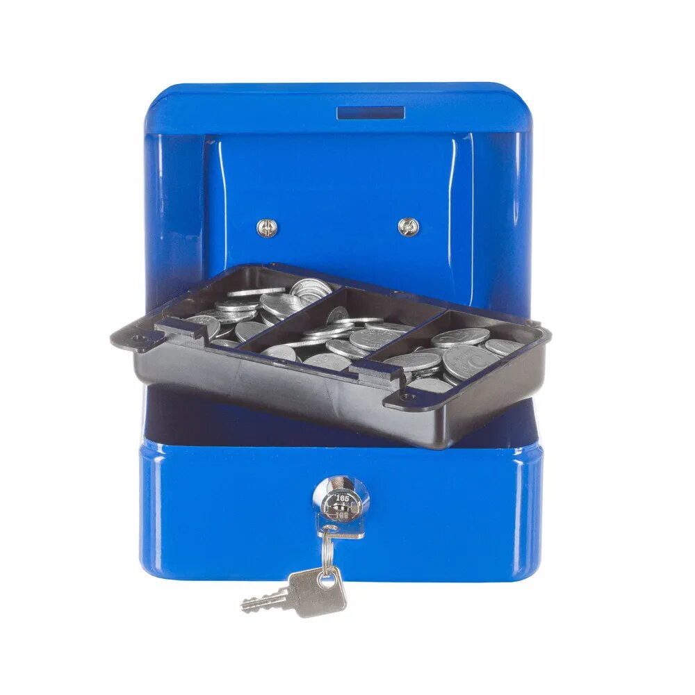 Ящик для денег SAFEBURG Keeper-15C Blue, переносной сейф, кэшбокс, тайник, шкатулка для ценностей, 3 отделения