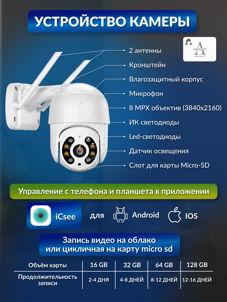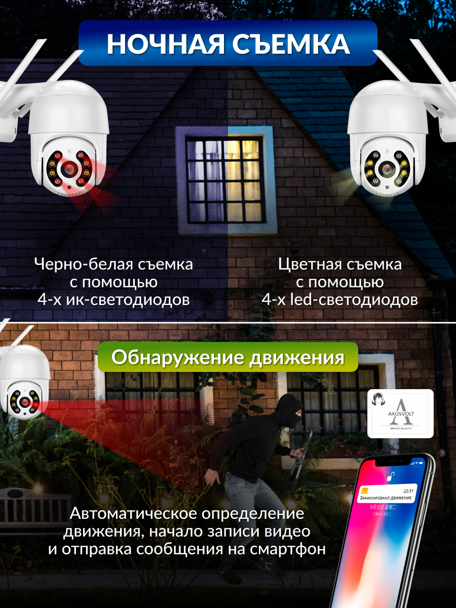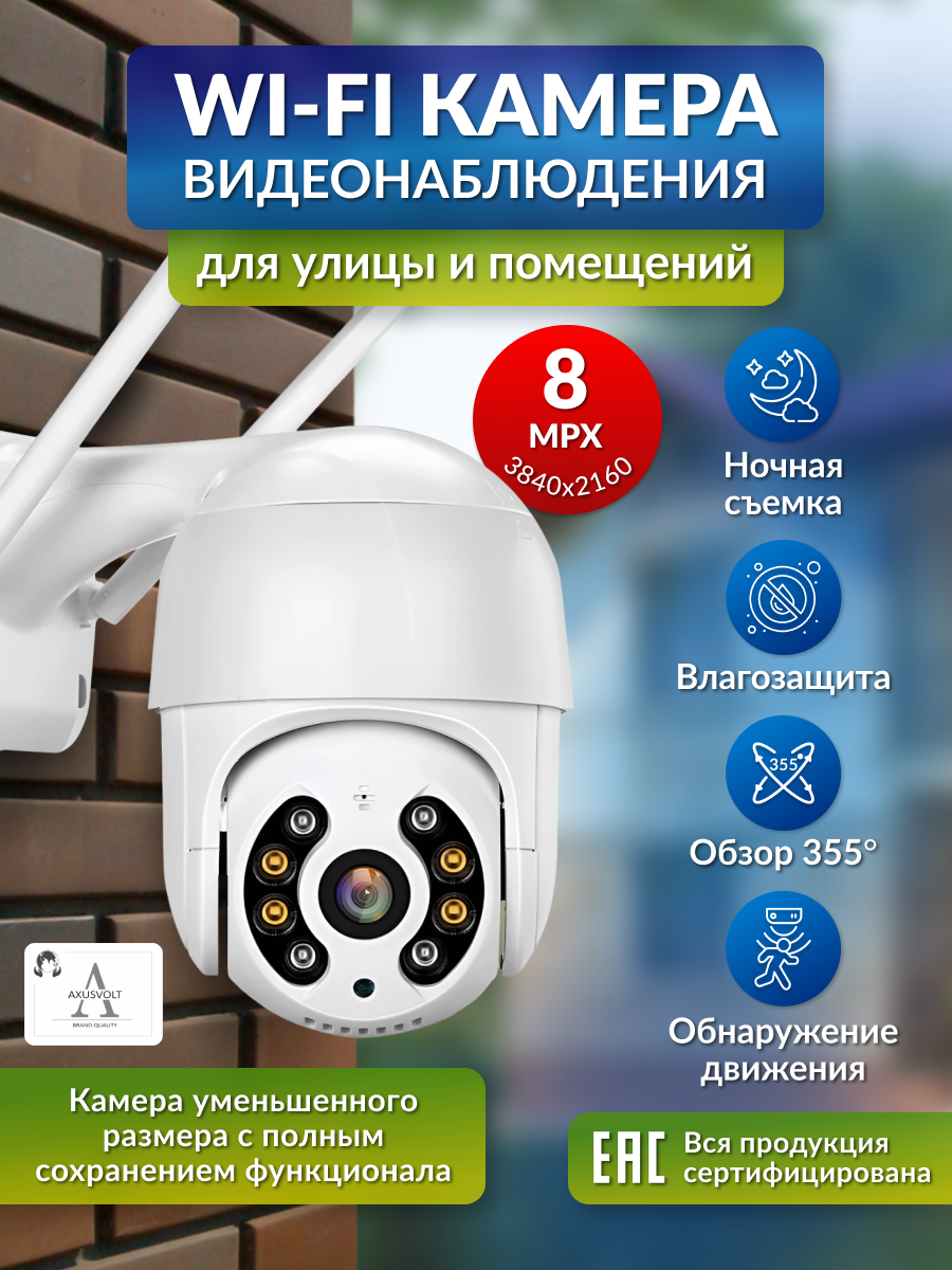 Умная Wi-Fi камера видеонаблюдения, 8МП, датчик движения, ночная съемка, поворотная, обратная связь интересное: