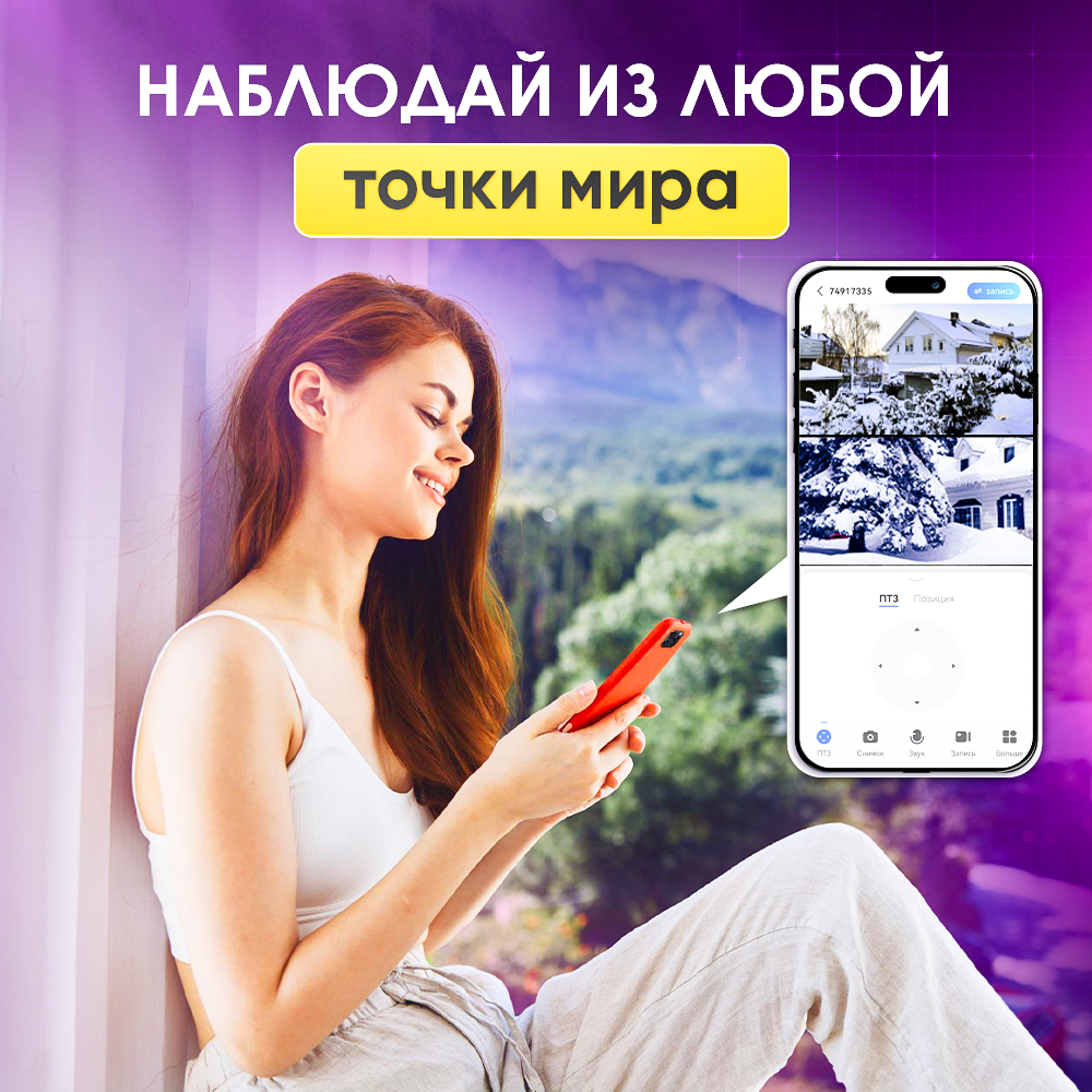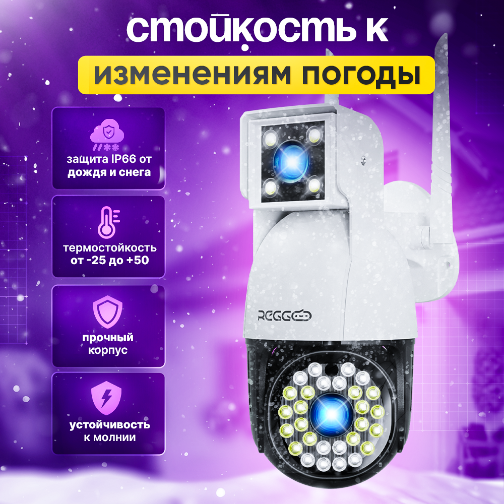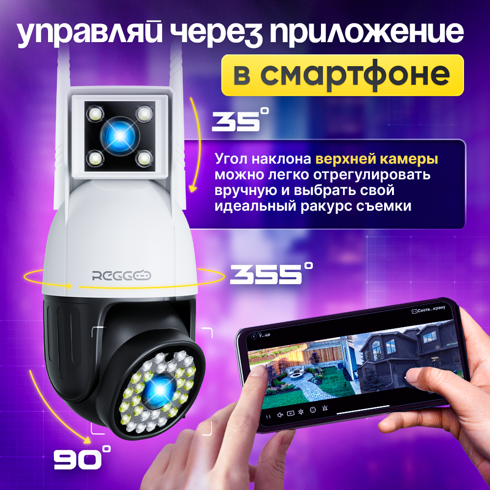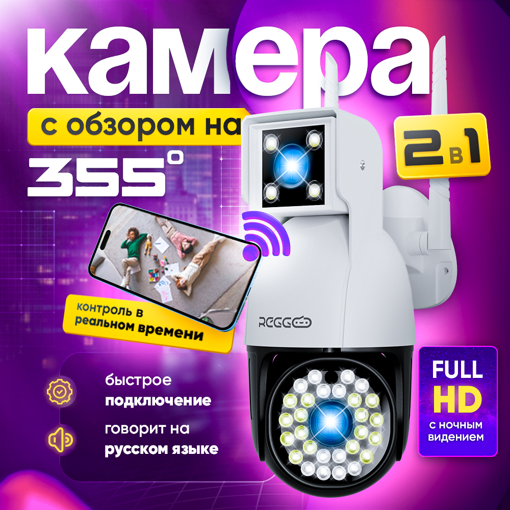 Камера видеонаблюдения уличная Wi-Fi с двумя объективами / REGGO/ Поворотная двойная IP видеокамера с датчиком движения и сигнализацией 3x3МП интересное:
