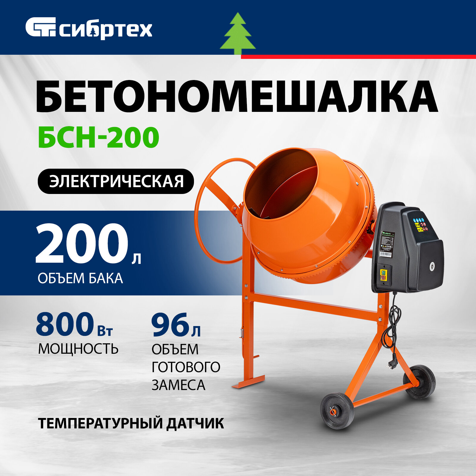 Бетоносмеситель Сибртех, БСН-200, 200 л, 800 Вт, 230 В, чугунный венец, 95514 интересное: