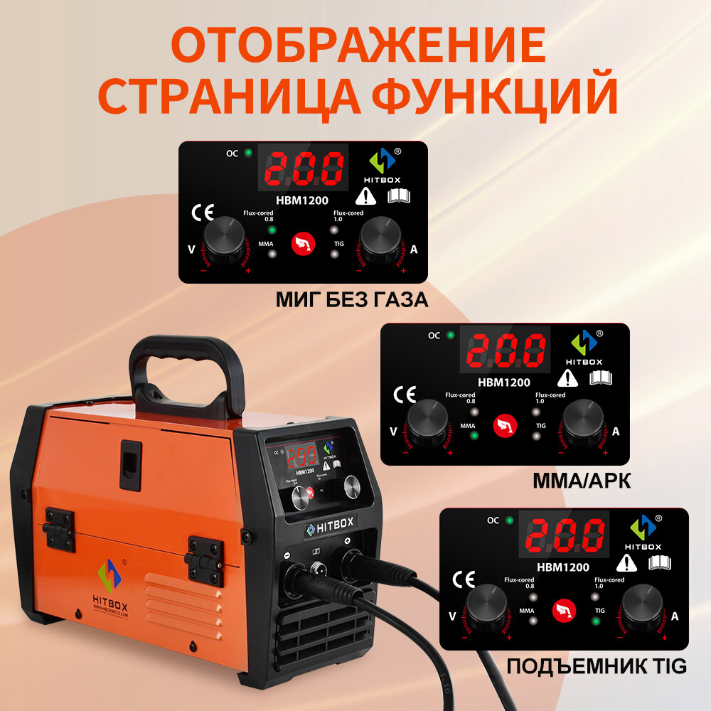 Купить Сварочный Полуавтомат HITBOX HBM1200, 3 В 1 Сварочный Аппарат Инверторный 220В (MIG Gasless, MMA, Lift TIG)
