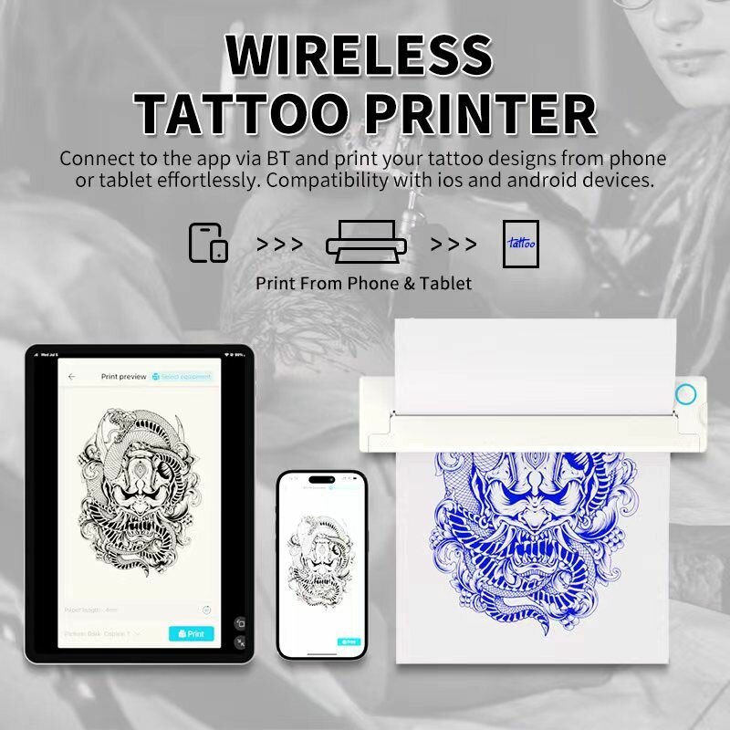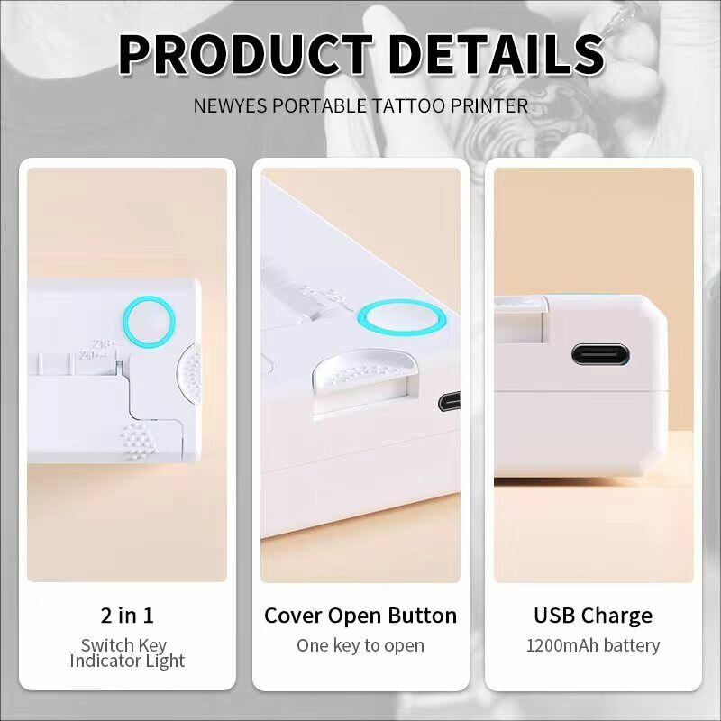Портативный тату термо принтер с Bluetooth NEWYES LD-0801 White интересное: