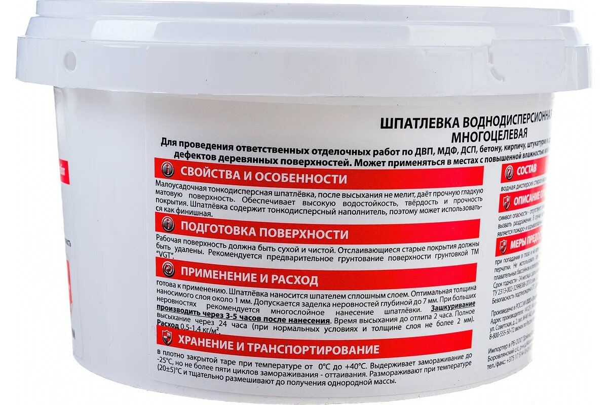 Шпатлевка Вододисперсионная Многоцелевая VGT 1кг Акриловая для Наружных и Внутренних Работ / ВГТ.