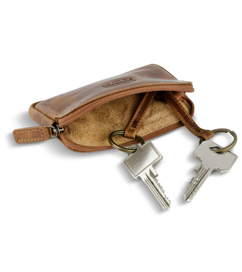 Купить Ключница карманная мужская женская KLONDIKE 1896 MOUNTAIN Tommy, натуральная кожа буйвола, коньячная