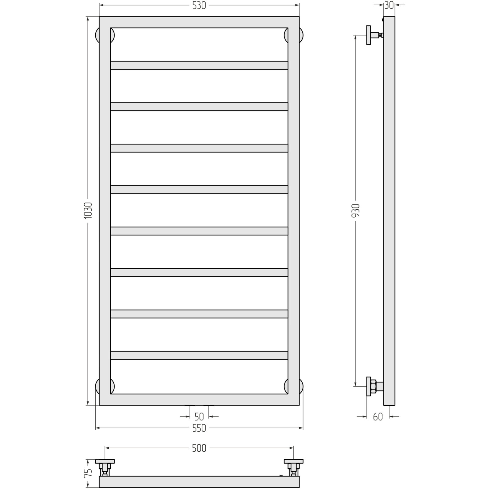 Водяной полотенцесушитель Сунержа Канцлер 1000x500 матовый белый арт. 30-0254-1050