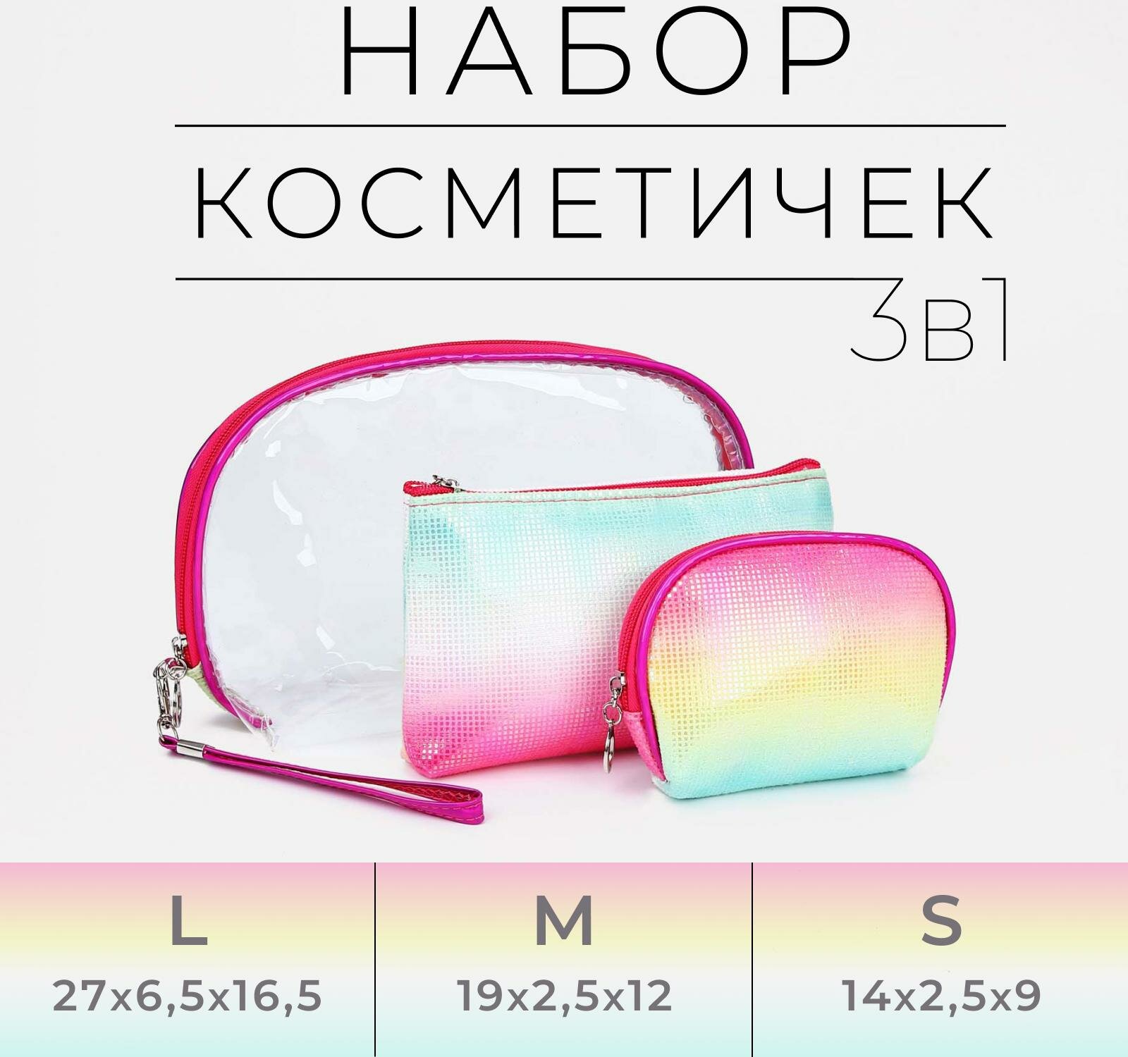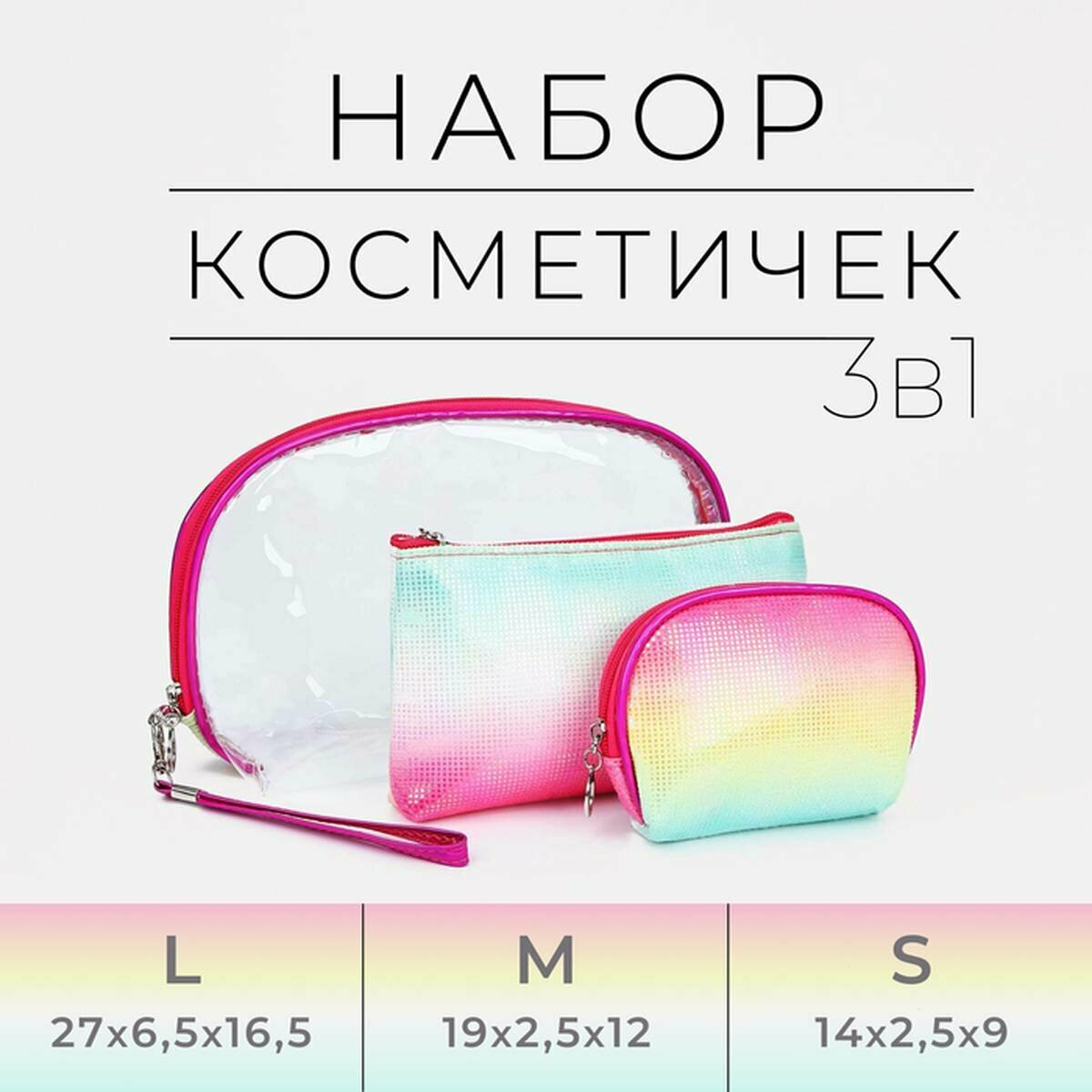 Комплект косметичек Сима-ленд, 6.5х16.5х27 см, , прозрачный