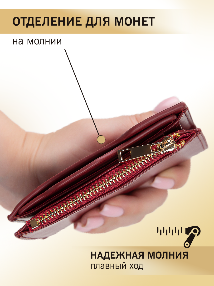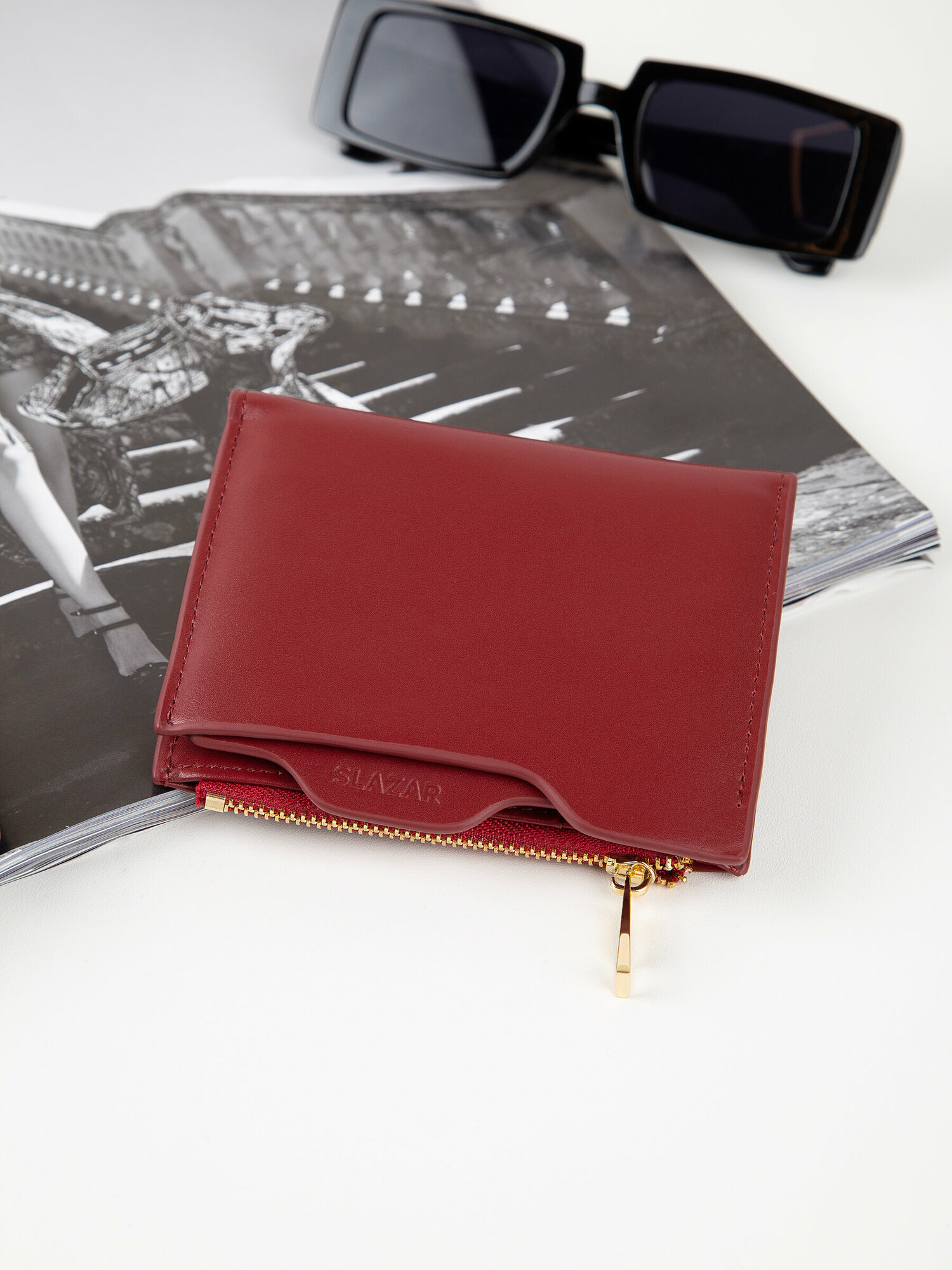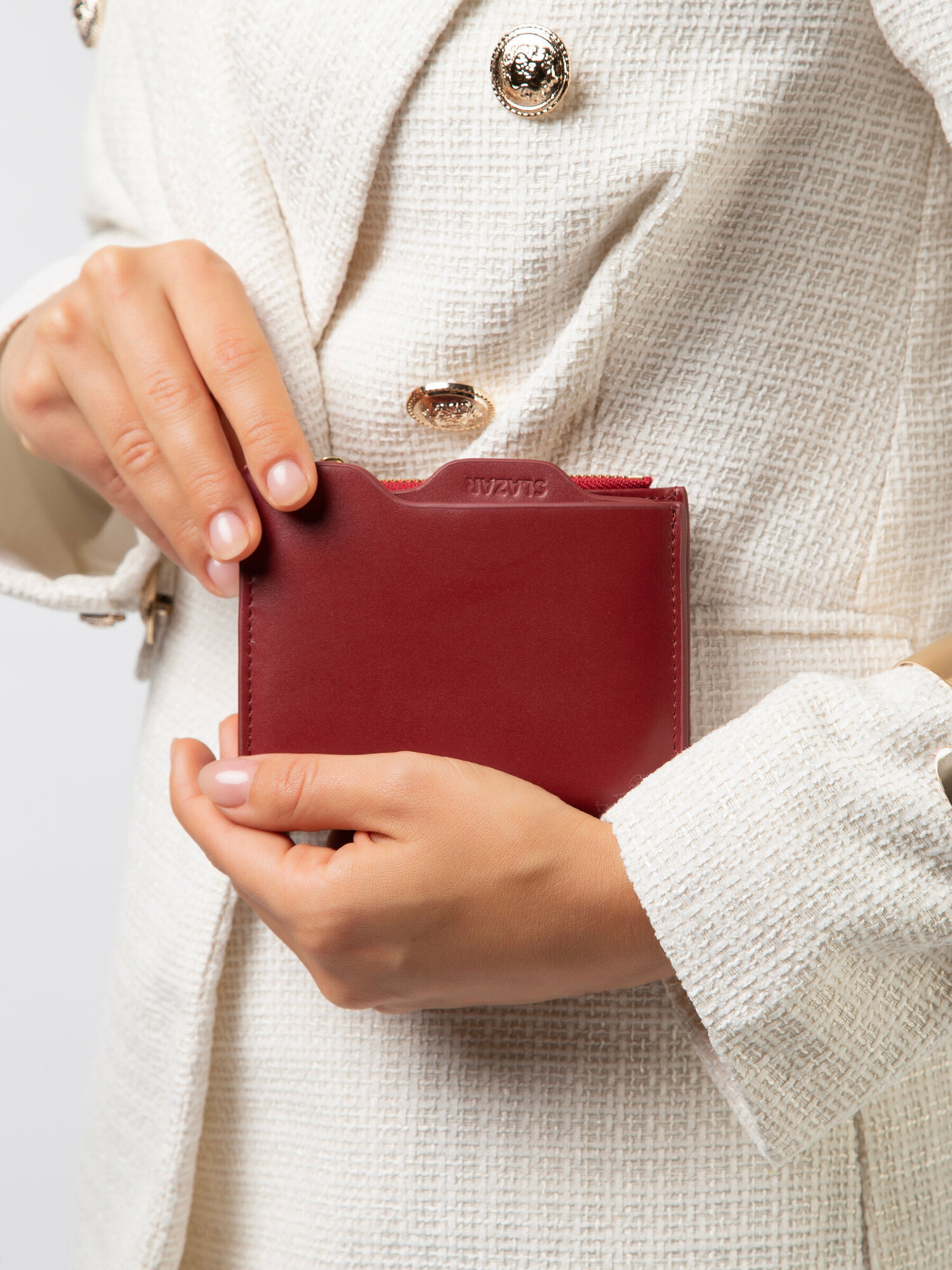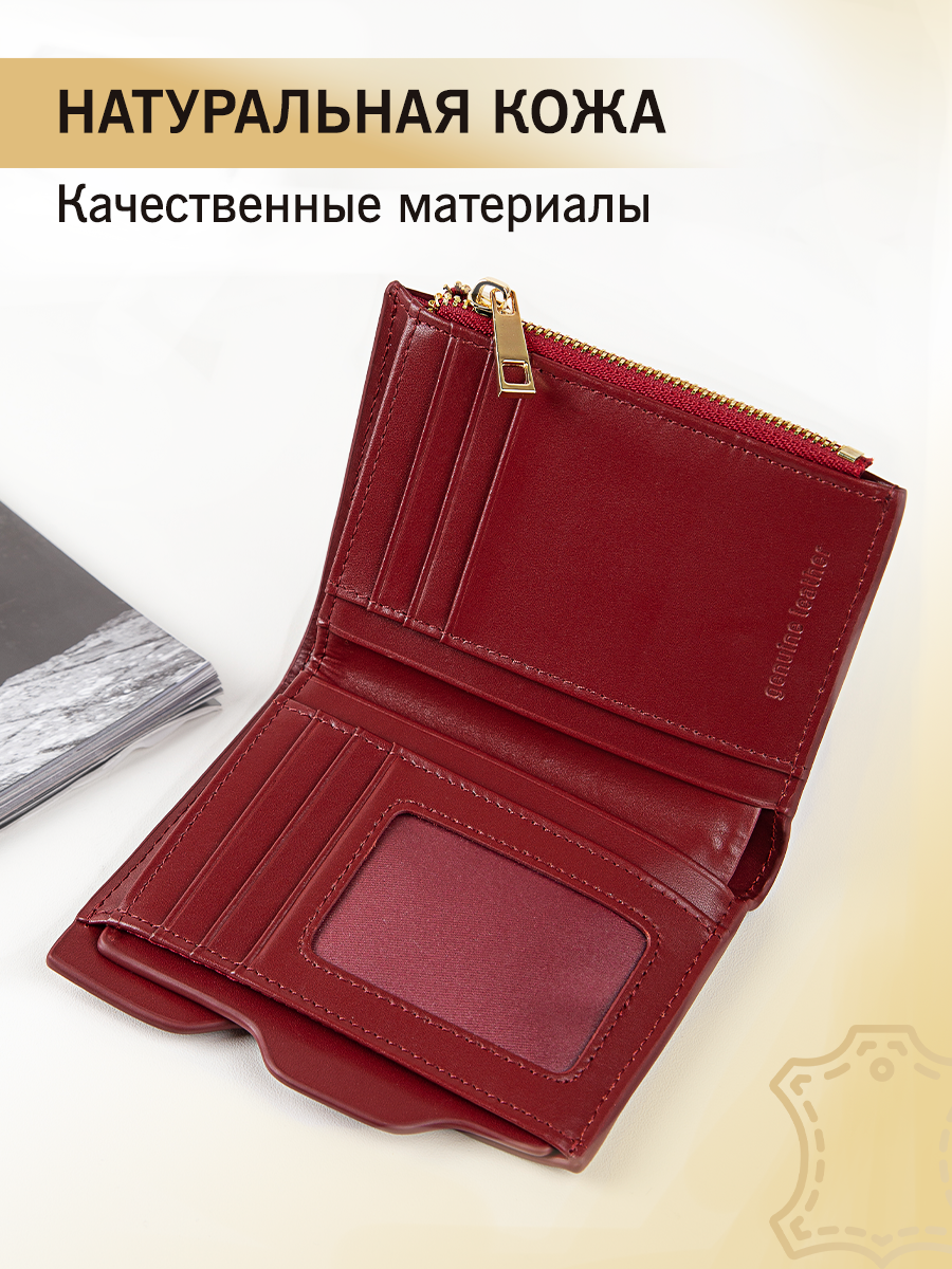 Кошелек женский маленький натуральная кожа красный красивый Slazar интересное: