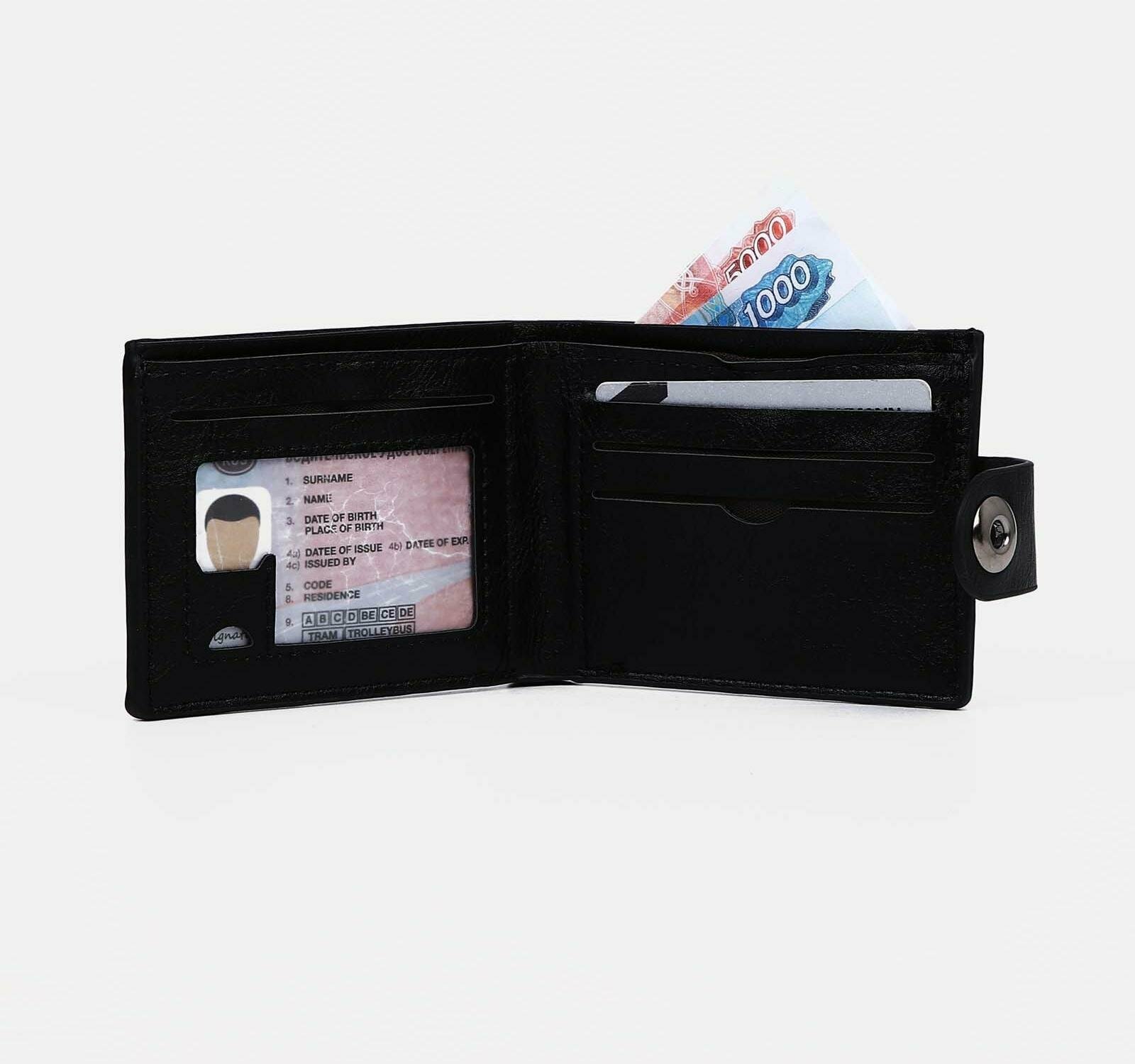 Портмоне мужское на магните, отдел для купюр, для карт, для монет, цвет чёрный интересное: