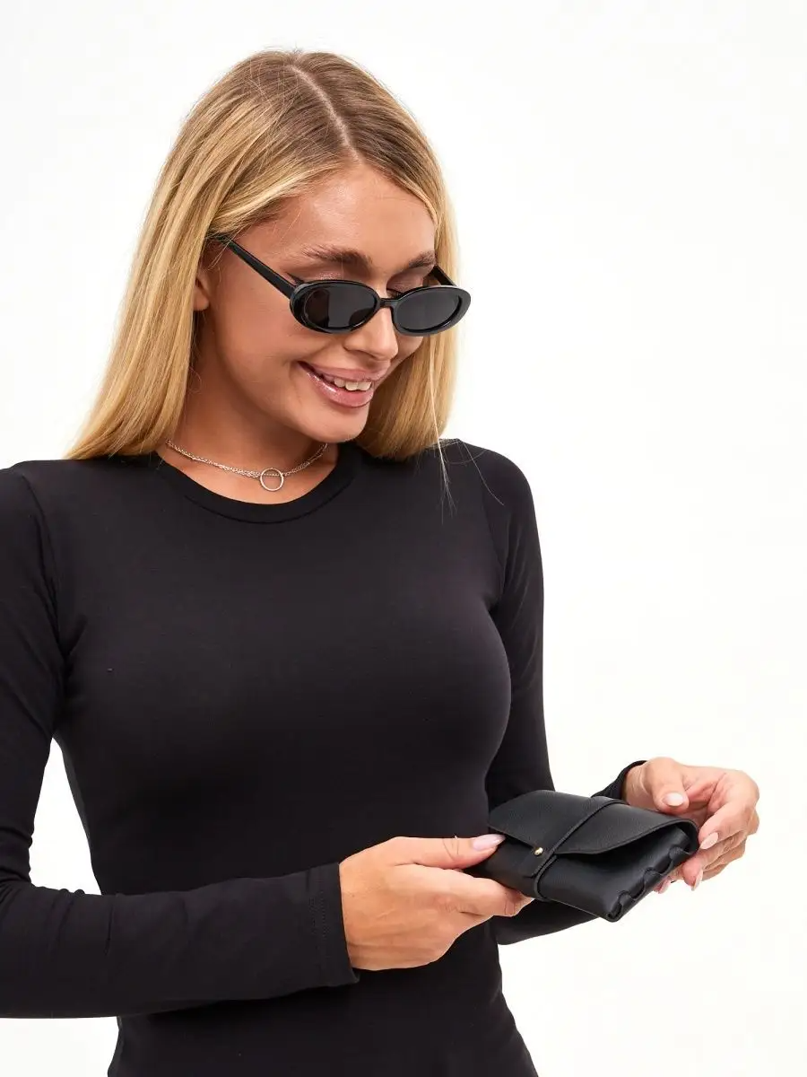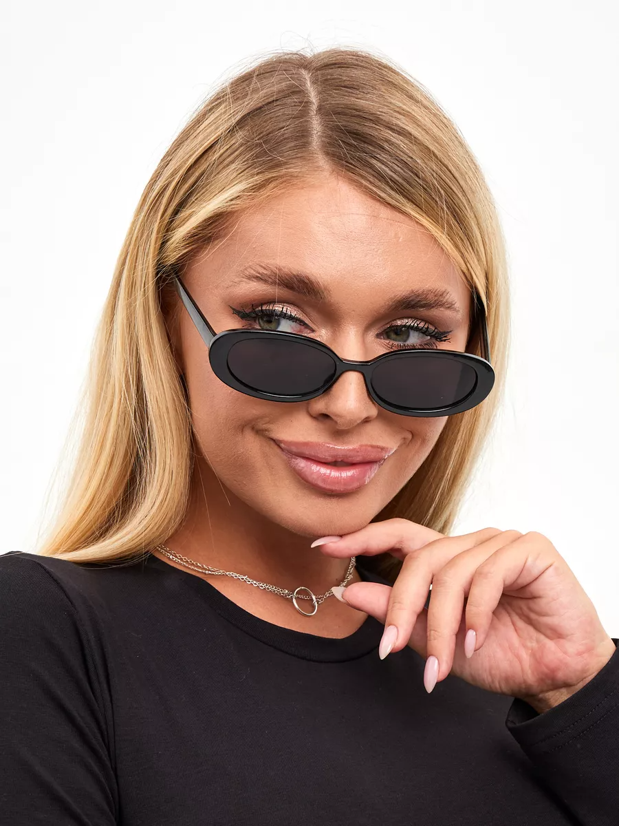 Купить Солнцезащитные очки черные овальные с темными линзами