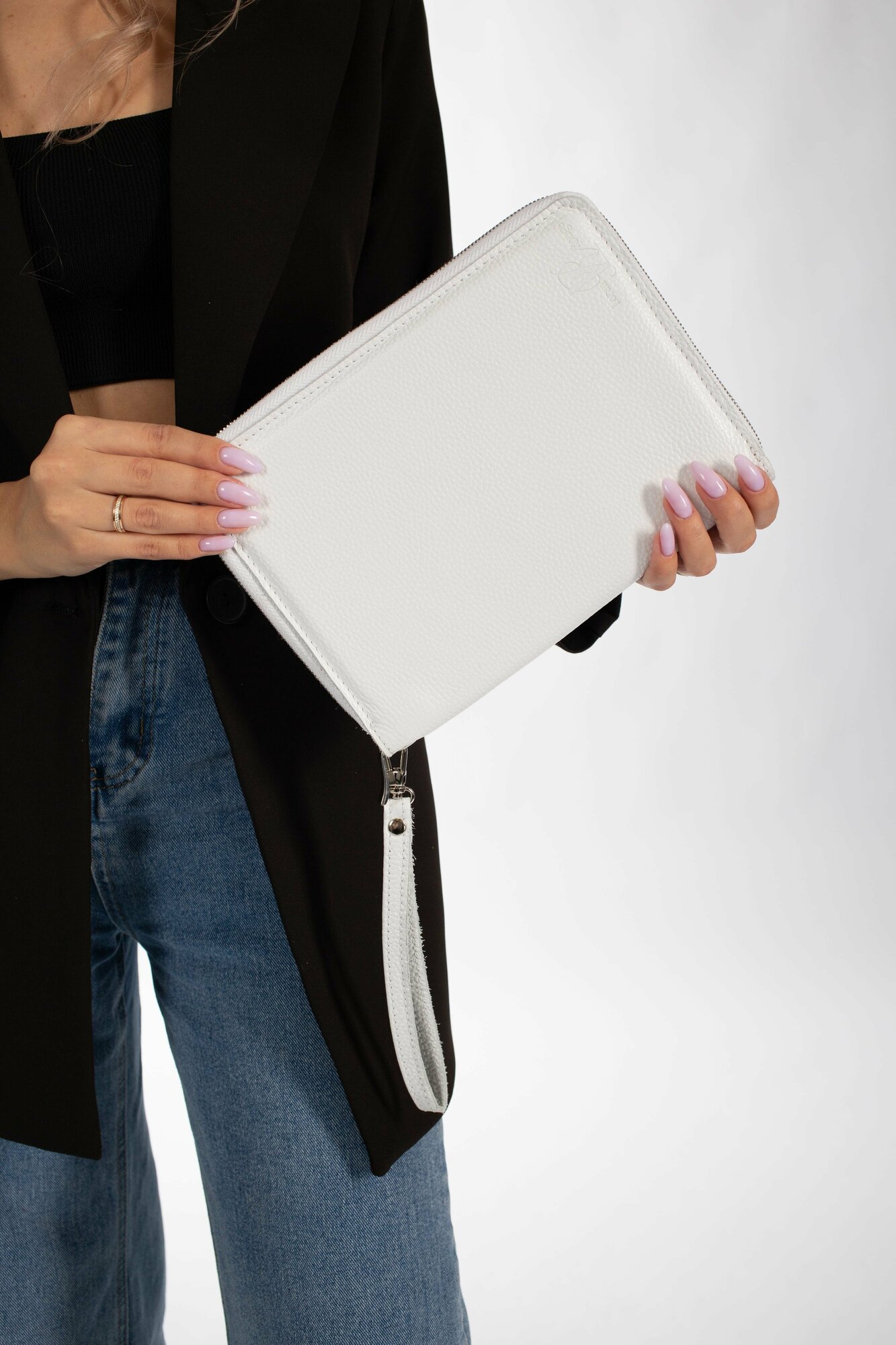Купить Папка-сумка из натуральной кожи А5 на молнии цвет белый