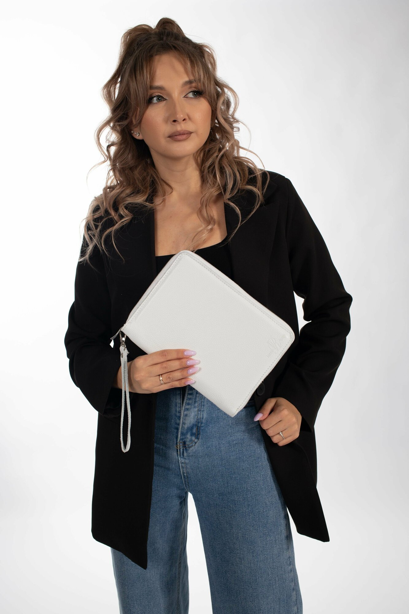 Папка-сумка из натуральной кожи А5 на молнии цвет белый интересное: