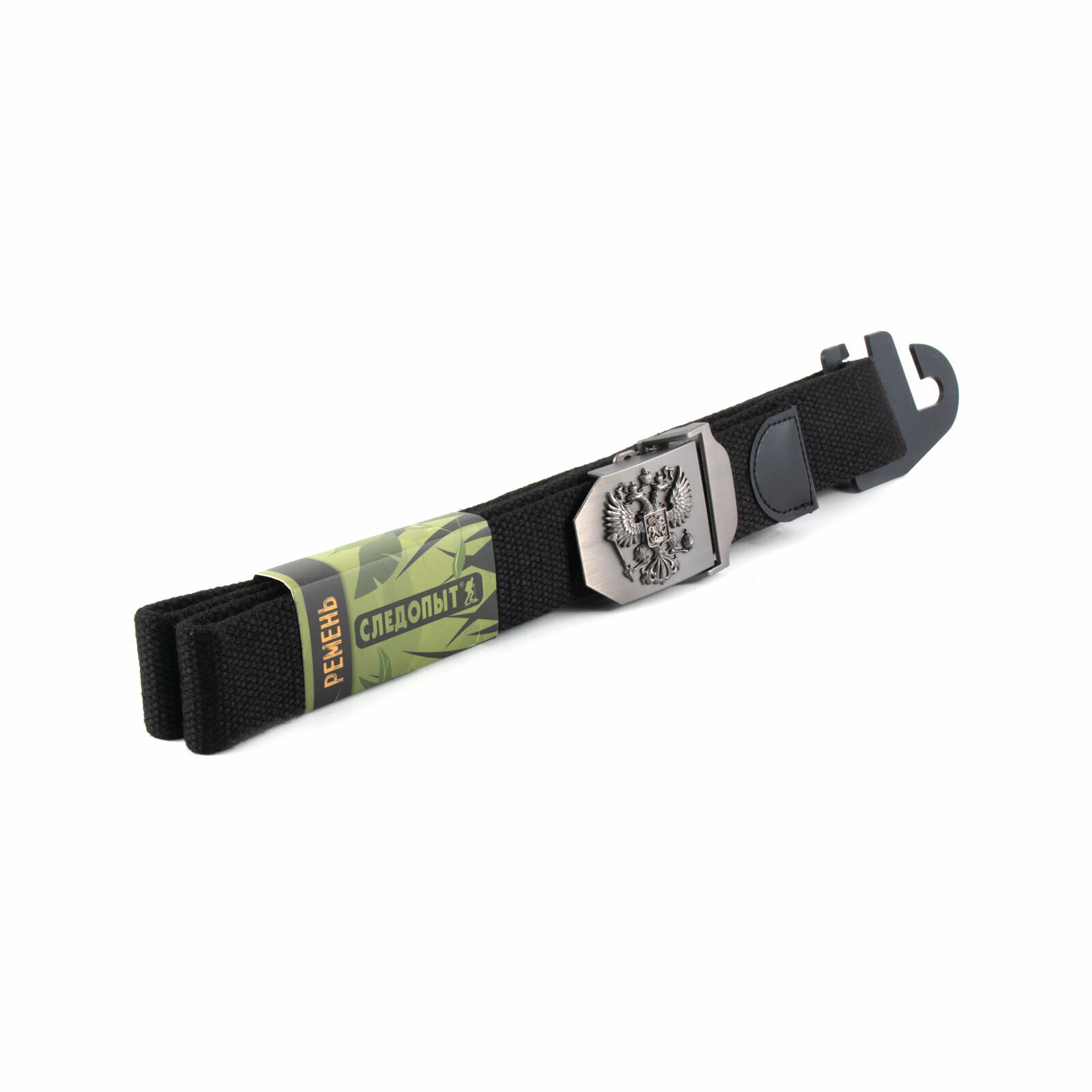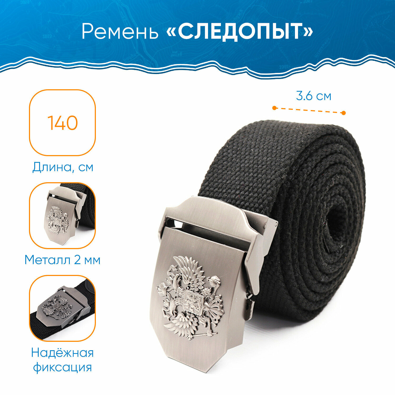 Ремень СЛЕДОПЫТ для мужчин, размер 140, Черный/Знак Качество